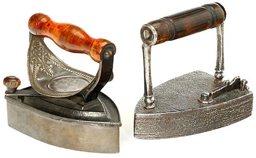 2 European Slug Irons, c. 1850 1) Box with heat shield, no slug, length 5 1/2 in. - And: 2) Hand-wrought iron, hinged gate, no slug, length 5 3/4 in.<Br>