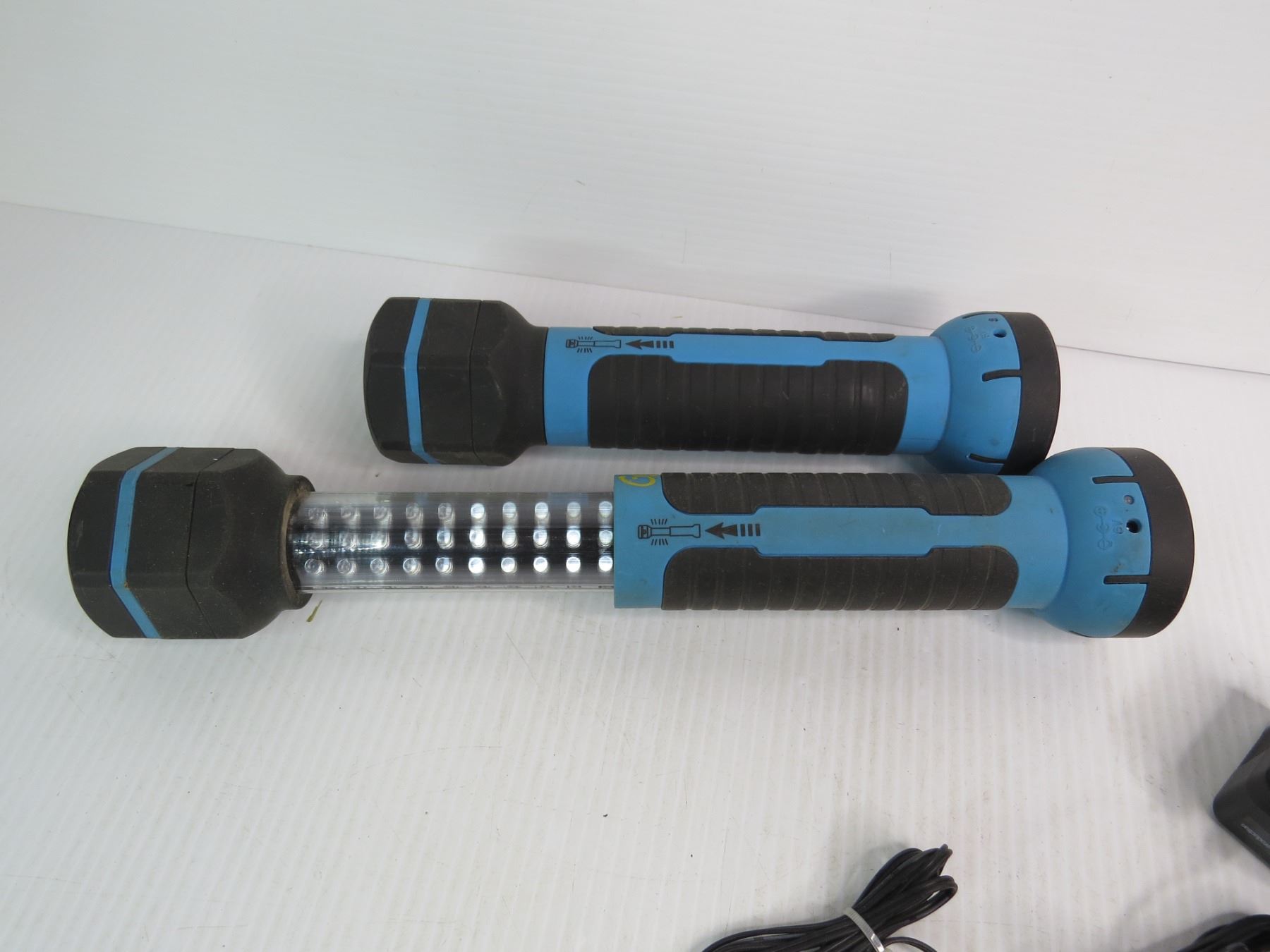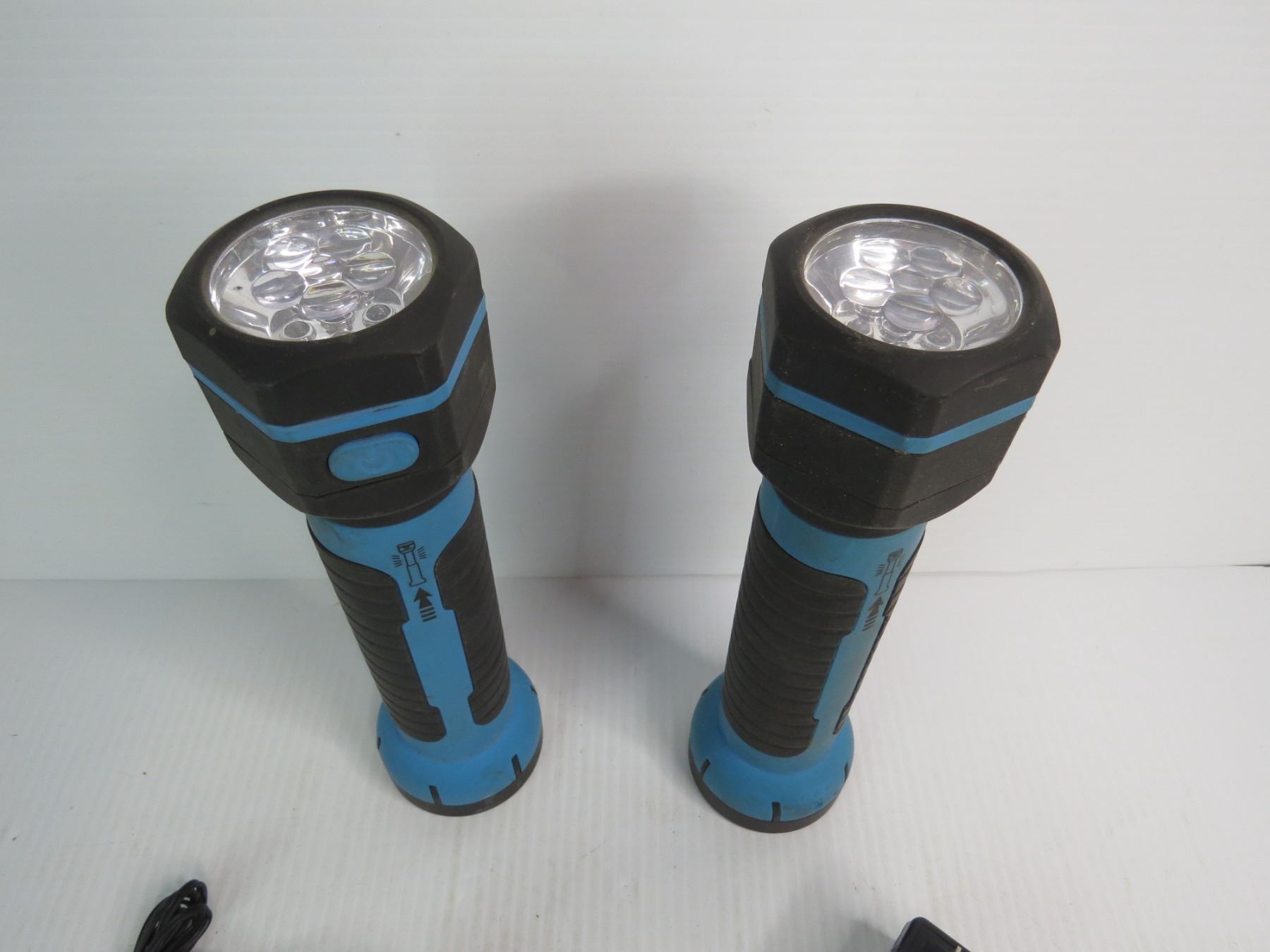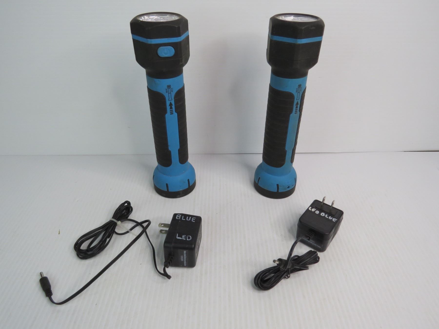 (2) Extendable Blue LED Lights w/Charger - (2) LED Flashlights