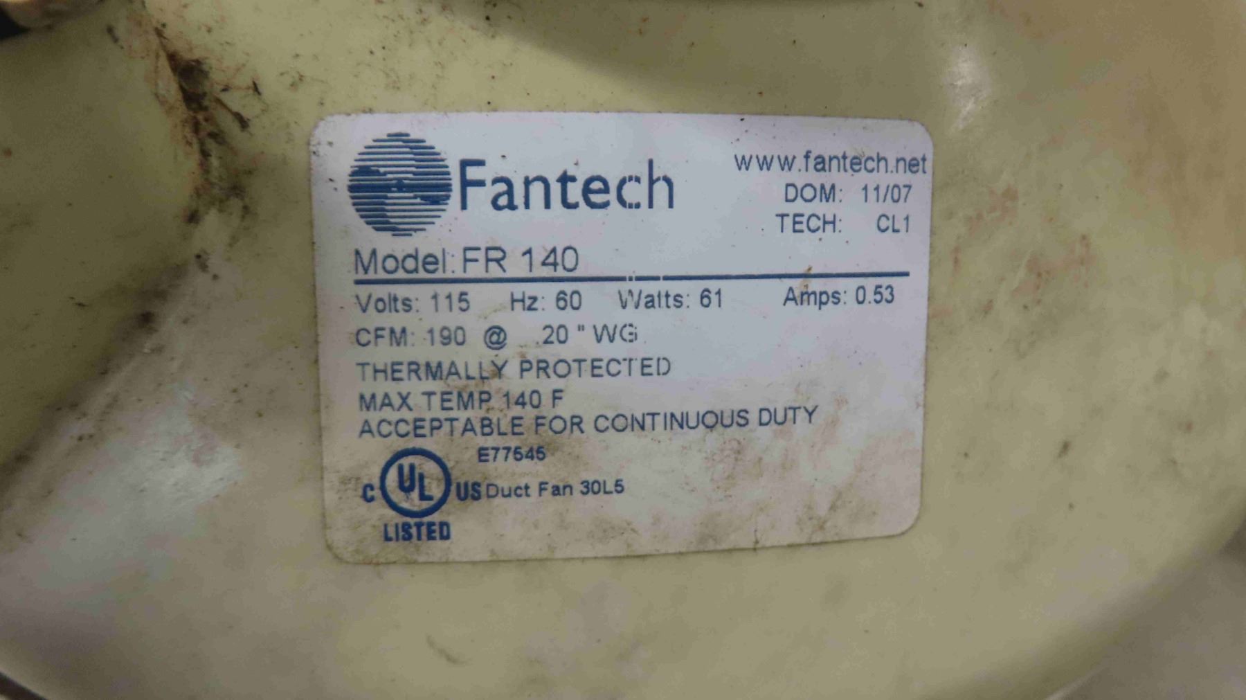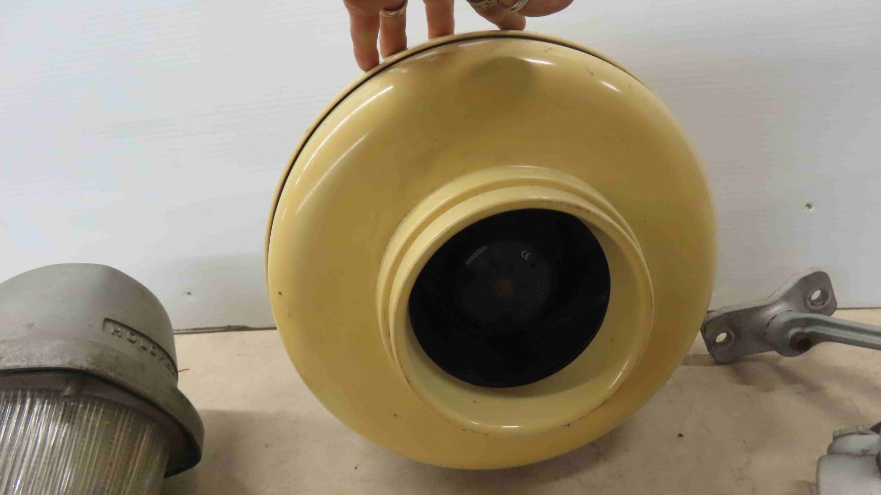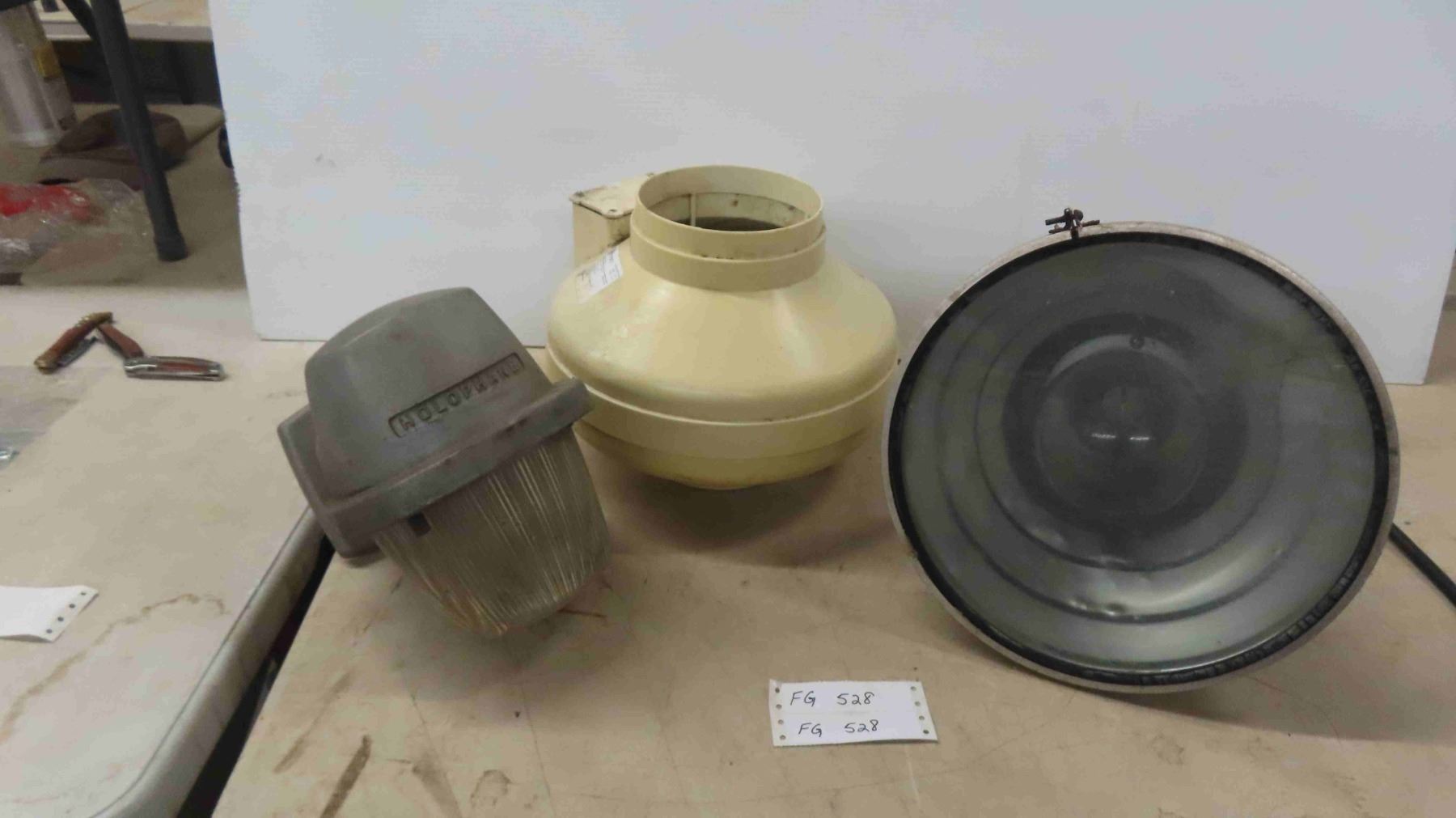 2 Exterior Commercial Light Fixtures, Fan Tech Model FR 140 Fan