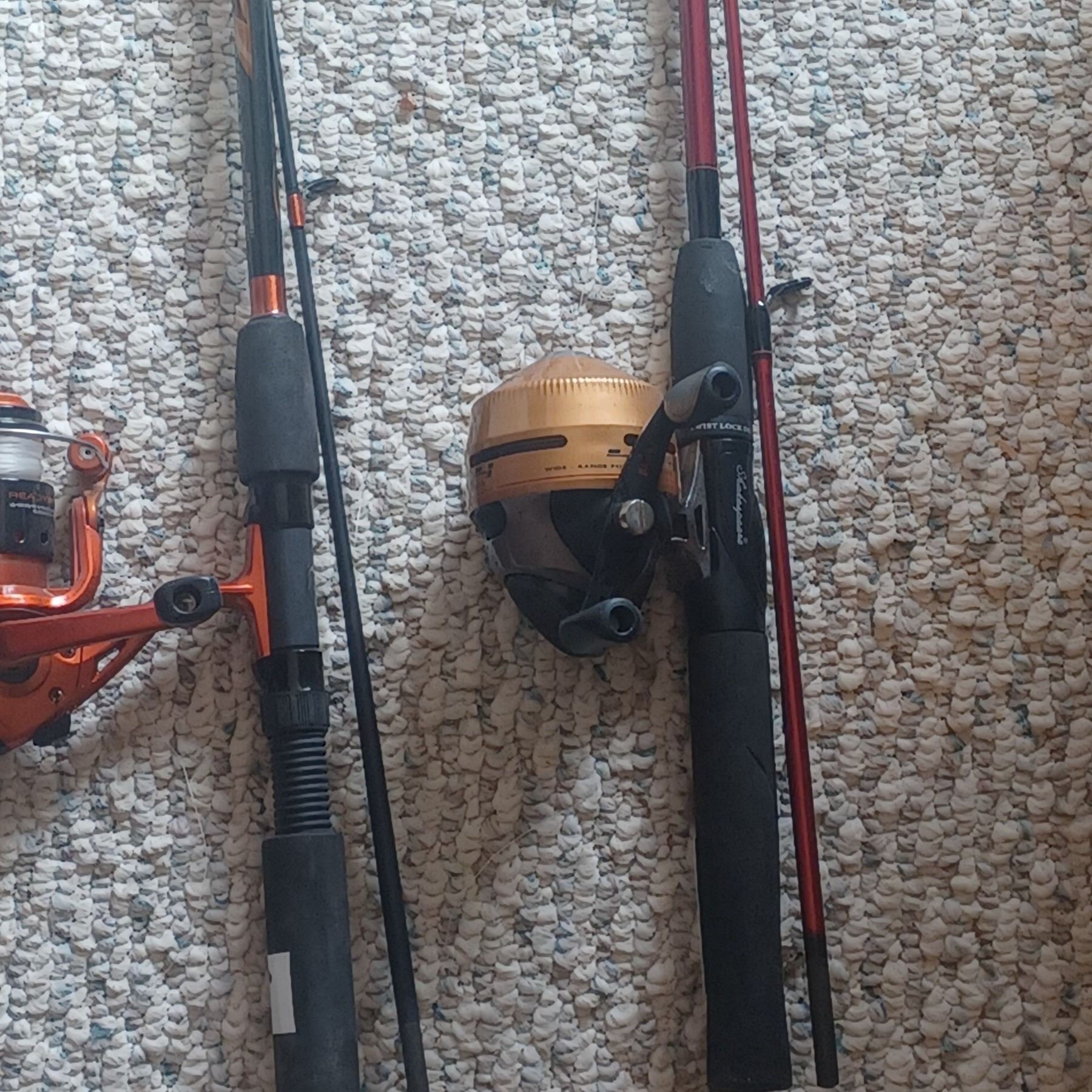2 FISHING RODS C/W REELS GREAT SHAPE