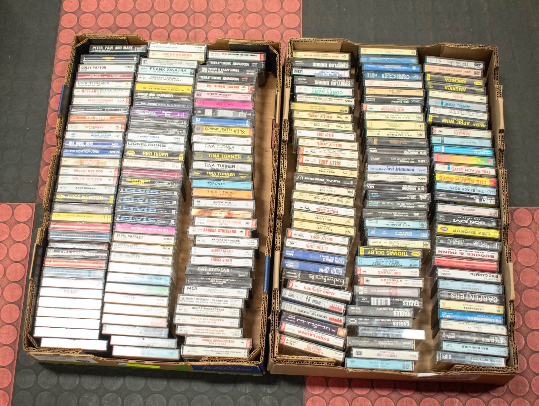2 FLATS OF CASSETTES - ELVIS, BILLY JOEL, NEIL