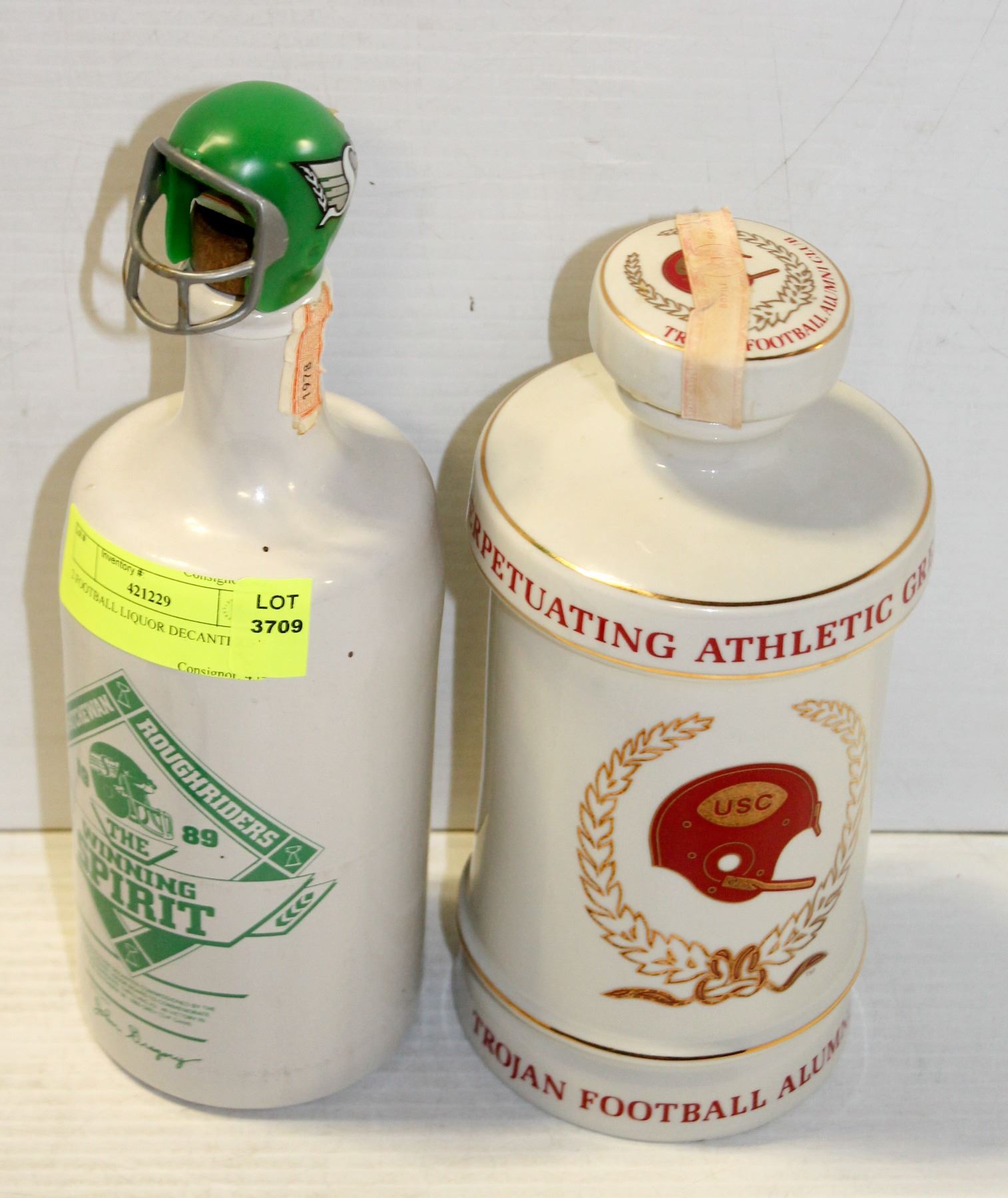 2 FOOTBALL LIQUOR DECANTERS