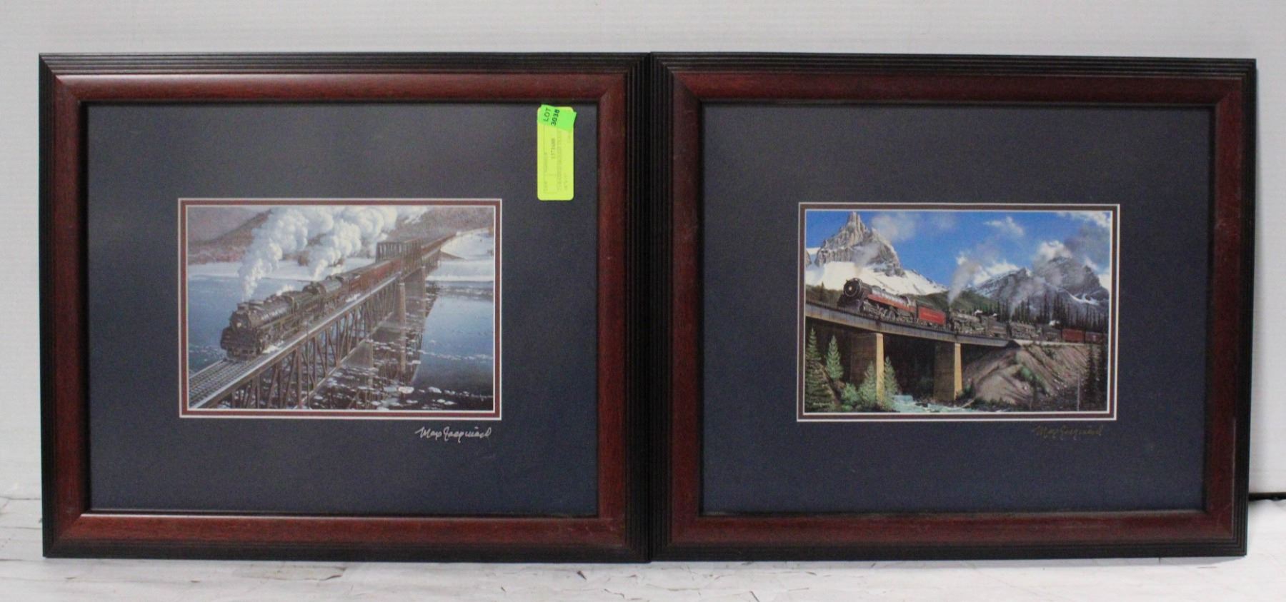 2 FRAMED SIGNED TRAIN PRINTS 18"X15"