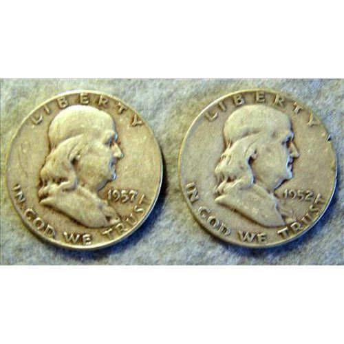 2 FRANKLIN HALF DOLLARS - 1957D & 1952D