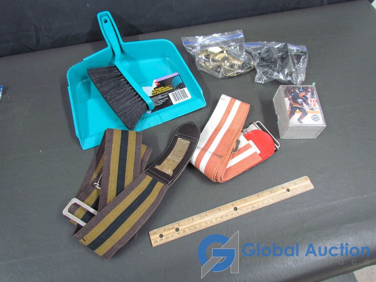 2 Fabric Belts, Hockey Cards in Clear Case, Dust Pan With Brush, & Hardware