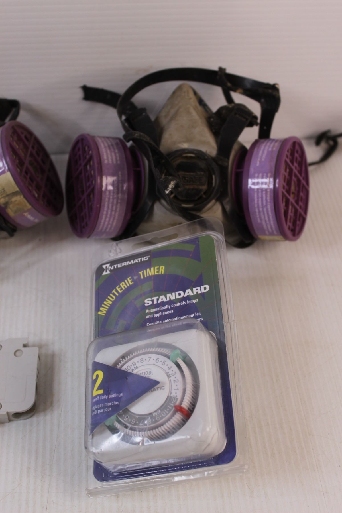 (2) Face Masks w/Spare Filters, Stab Loc 15 Amp, Timer & Electrical Plug in