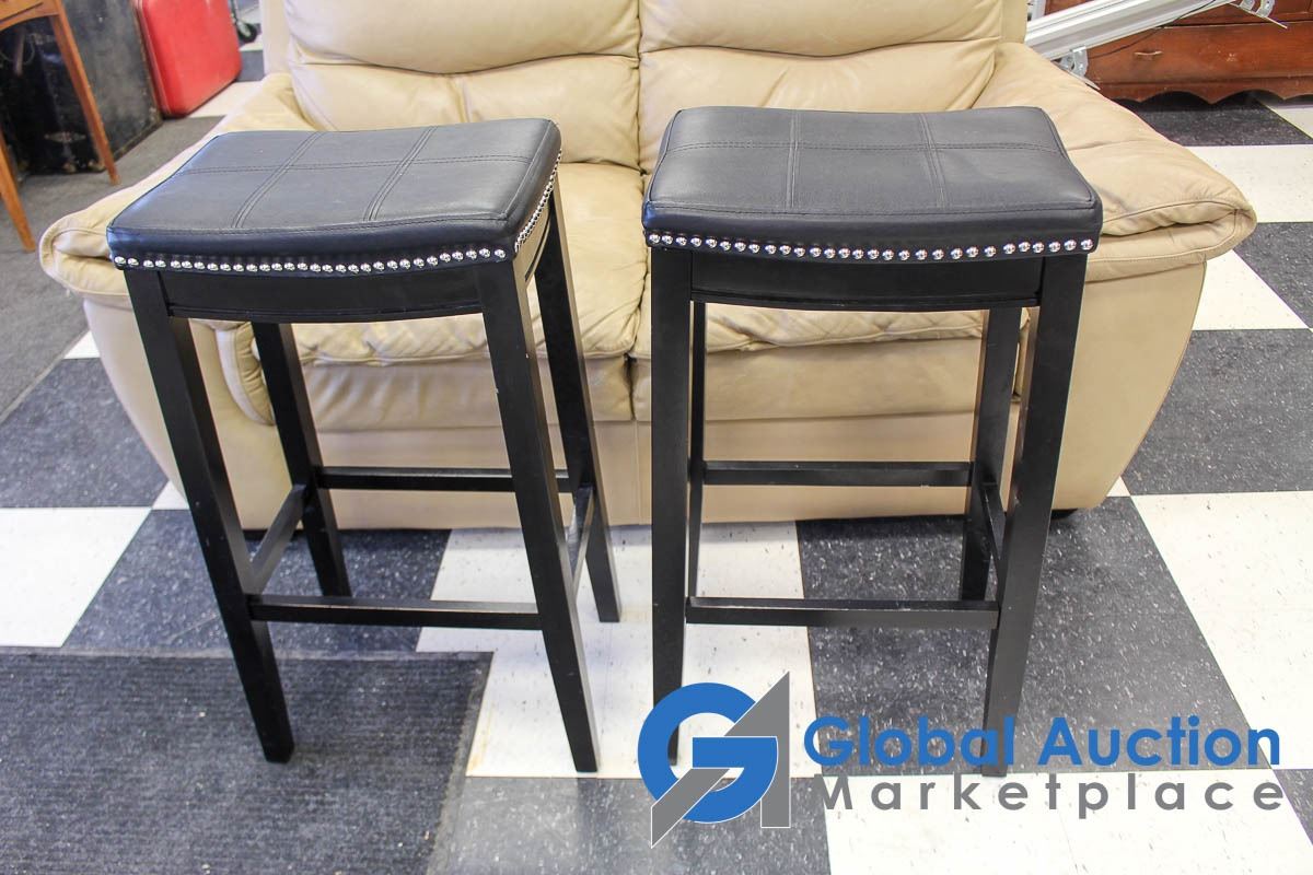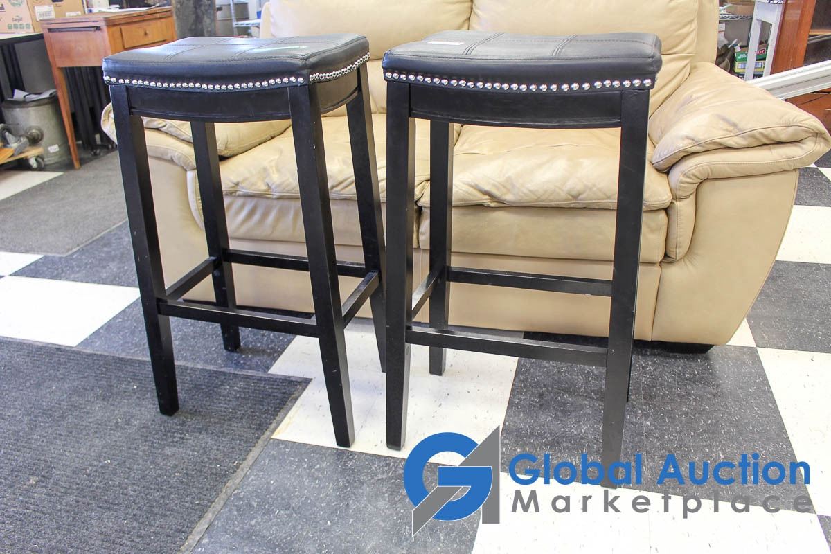 **(2) Faux Leather Studded Padded Bar Stools - BID PRICE x2