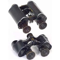 1) Goerz, Berlin: "Triëder Binocle 12 x" (ist 12 x 21), um 1910, Nr. 2.568. Seltenes Glas mit außergewöhnlichen Ausstattungsmerkmalen: Augenabstand über "Mitteltrieb" (keine Knickbrücke) und Bildschärfeneinstellung über "Innenfokussierung" (nach Seeger: "Feldstecher", S. 35), mit Köcher. - Rare Goerz "Triëder Binocle" with unusual features. With maker's case. (3+/2) - Und: 2) "Heli Triëder 8 x" (8 x 25), klassisches Prismenglas, Köcher. - With maker's case. (3+/3+) - € 150/250 - (80/9)