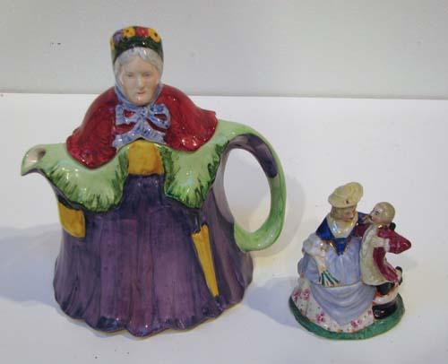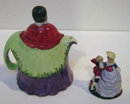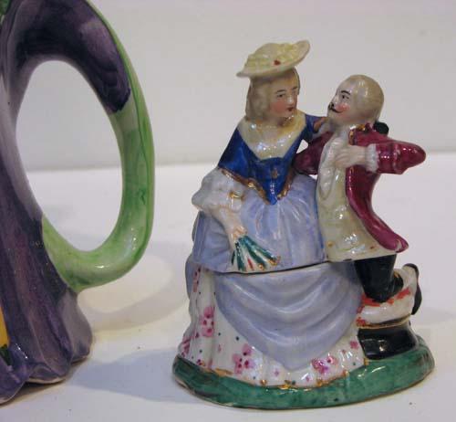 Title: 2 Figural Lidded Vessels: Little Old Lady (Made in England), Lord and Lady Trinket Box