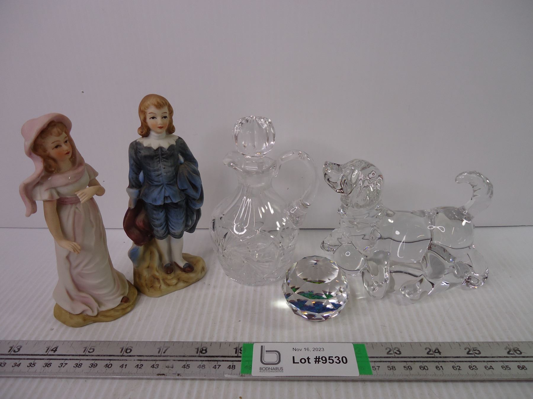 (2) Figurines,(2) Crystal Pieces and Paperweight