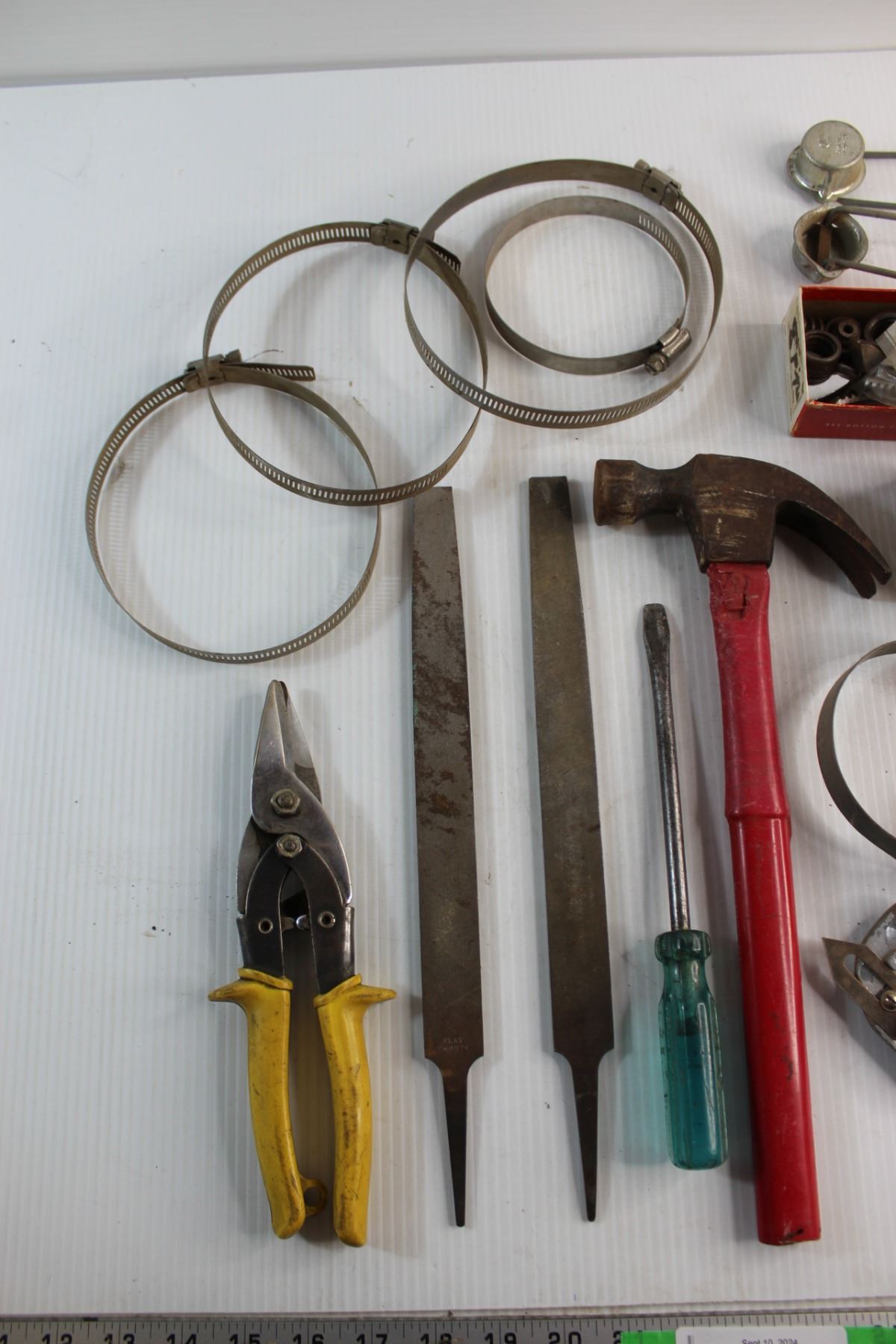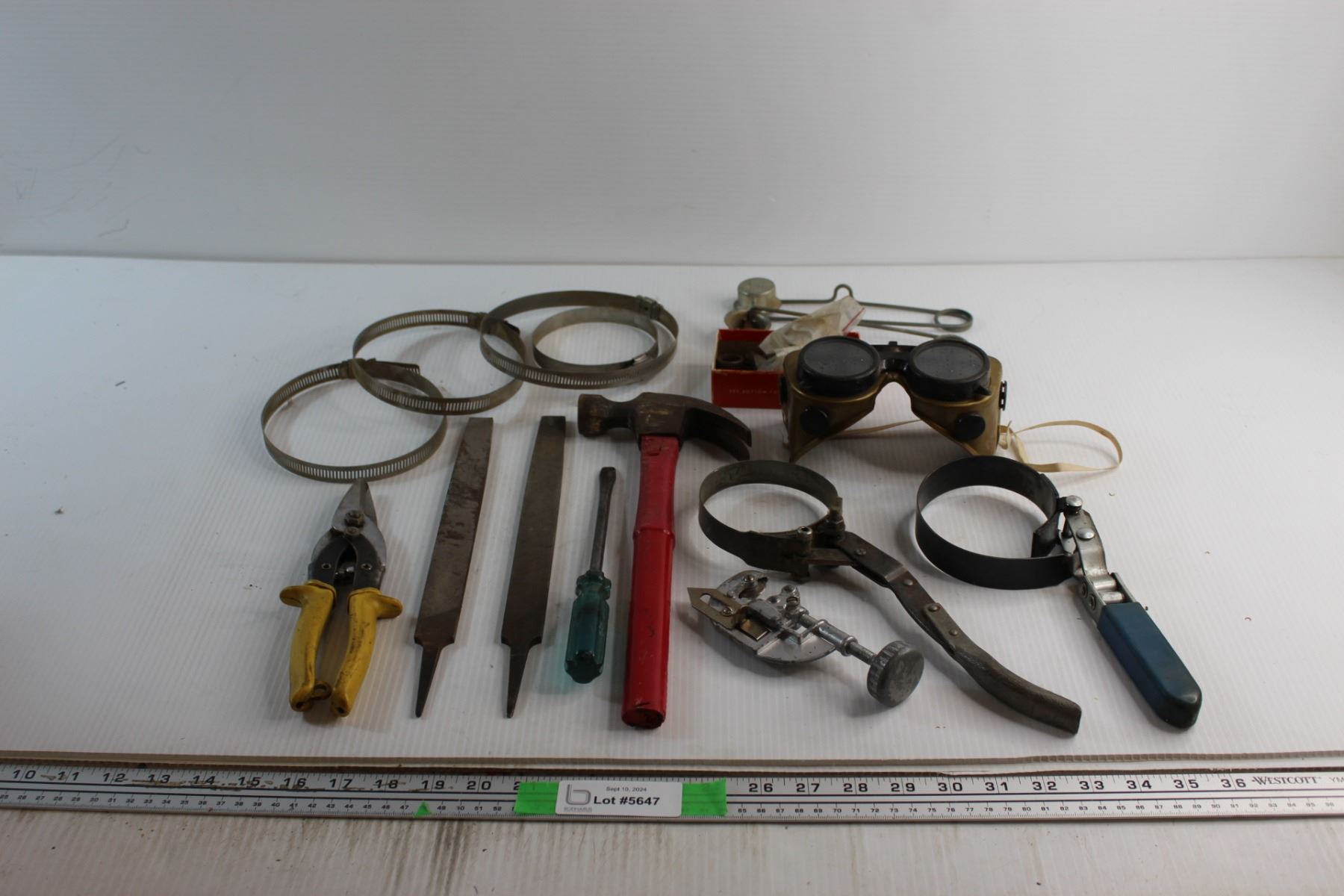 (2) Files, Welding Goggles, Hammer, (2) Oil Filter Wrenches and Assorted Items