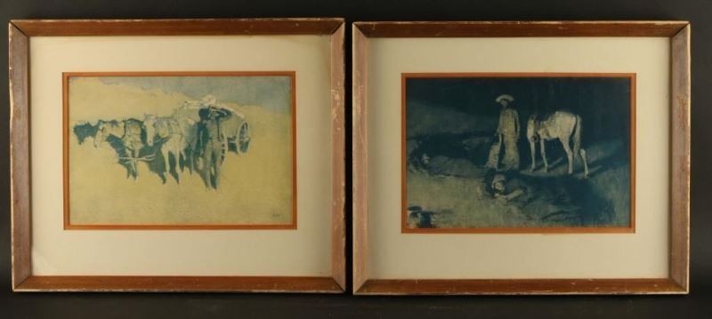 Taken from Frederic Remington's book, both are of cowboys and horses. Matted and framed alike measure 12 1/2"x 8 1/2".