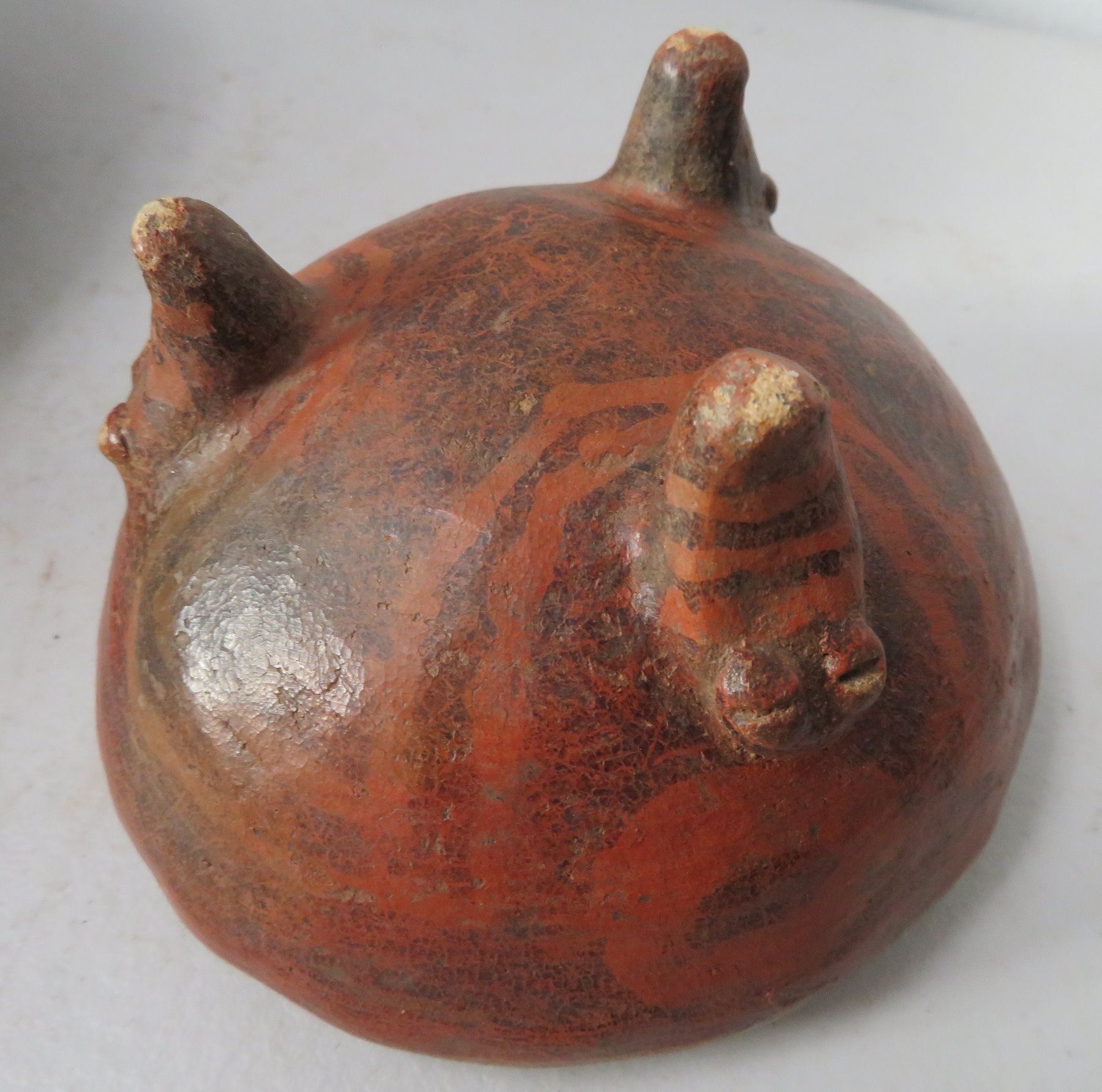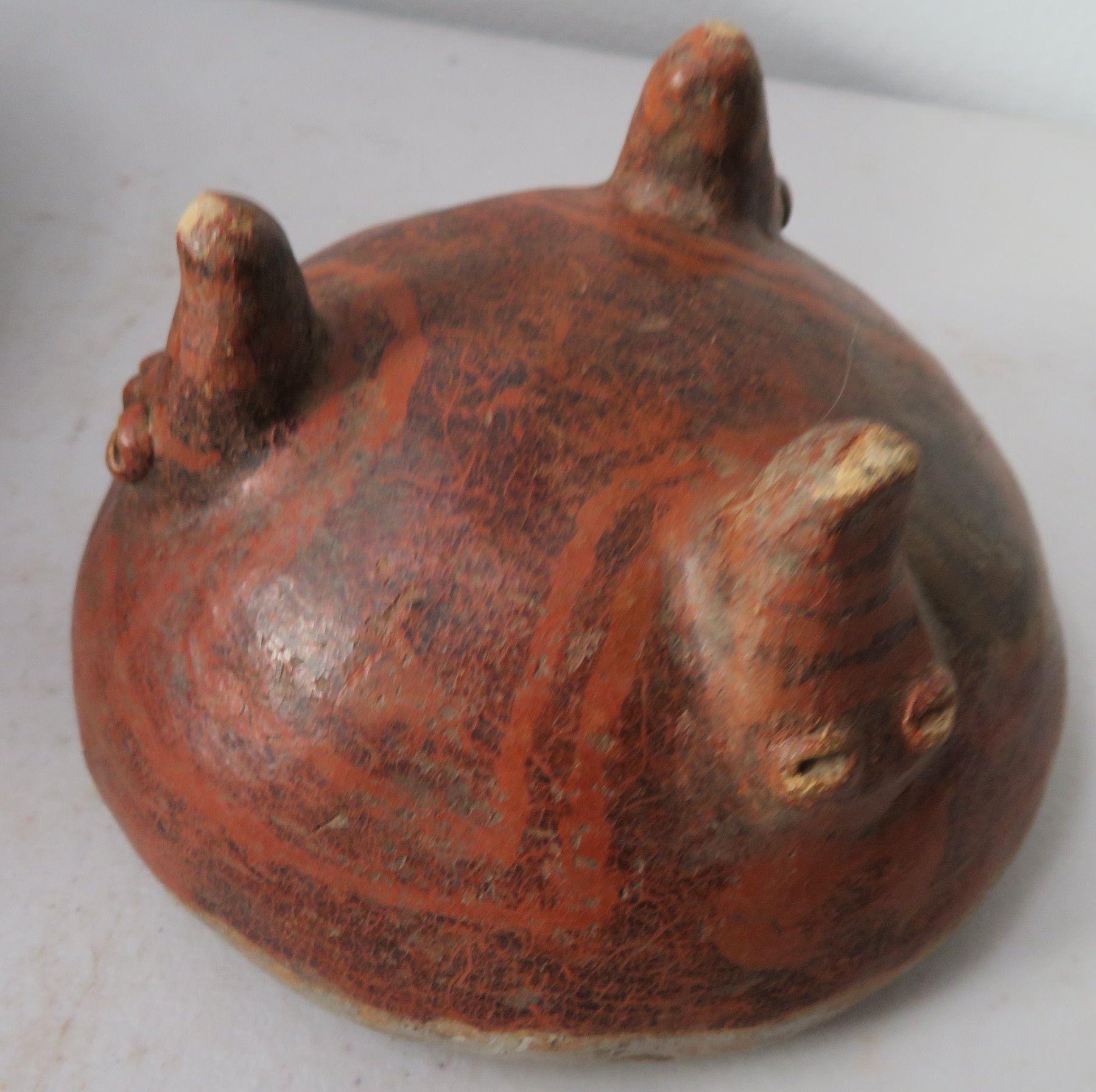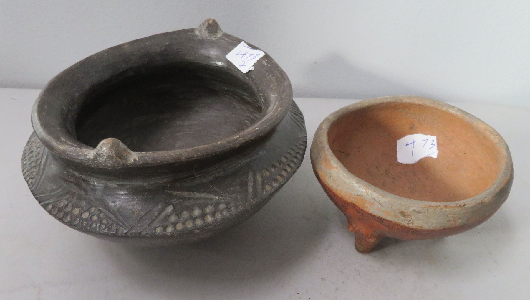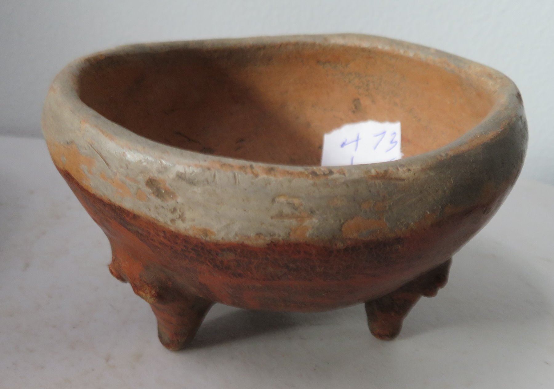 2 Fine Chupicuaro Bowls, pre-Columbian items. Made of clay and paint, the largest measures 8" x 4". Chupicuaro, Mexico. Smaller has effigy legs. Condition: Good, see images. Shipping: $34.50 w/insurance and signature, double-boxed, due to value and weight.