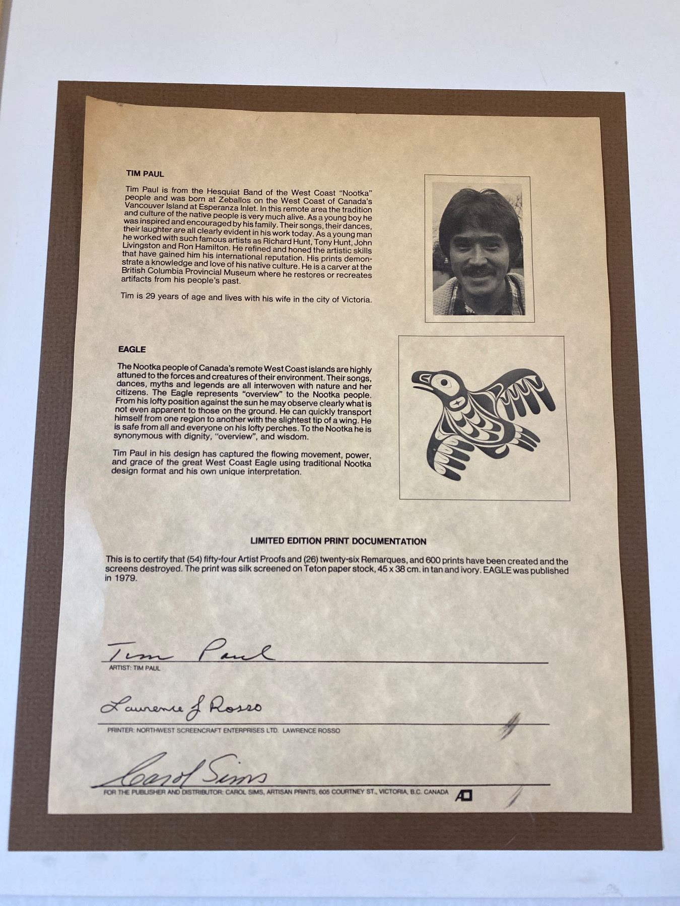 2 First Nations Prints, Artist Print By R. Hanuse 1979 And Large Artist Print By Tim Paul