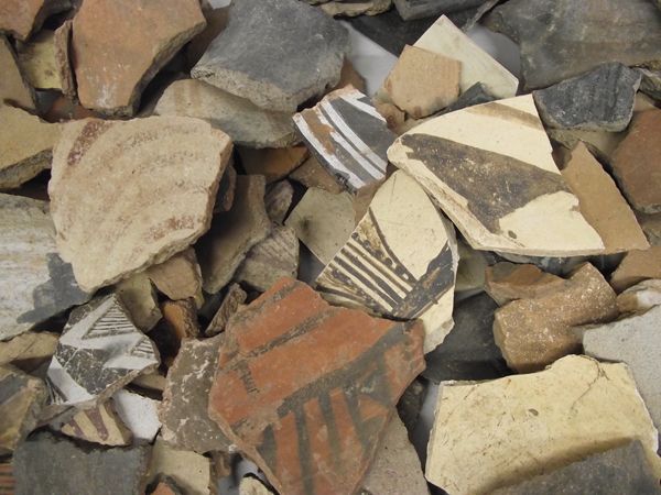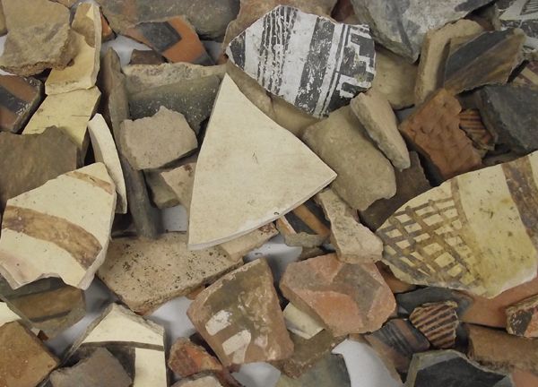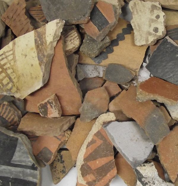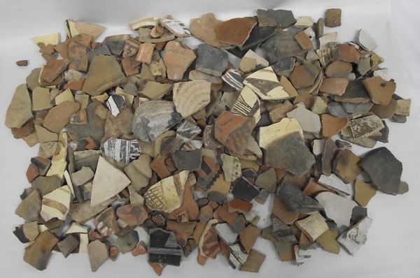 2 Flats of Varied New Mexico Utilitarian Sherds. Many painted, some micaceous clay. Largest measures 4.5''L x 4.5''W. Heavy.