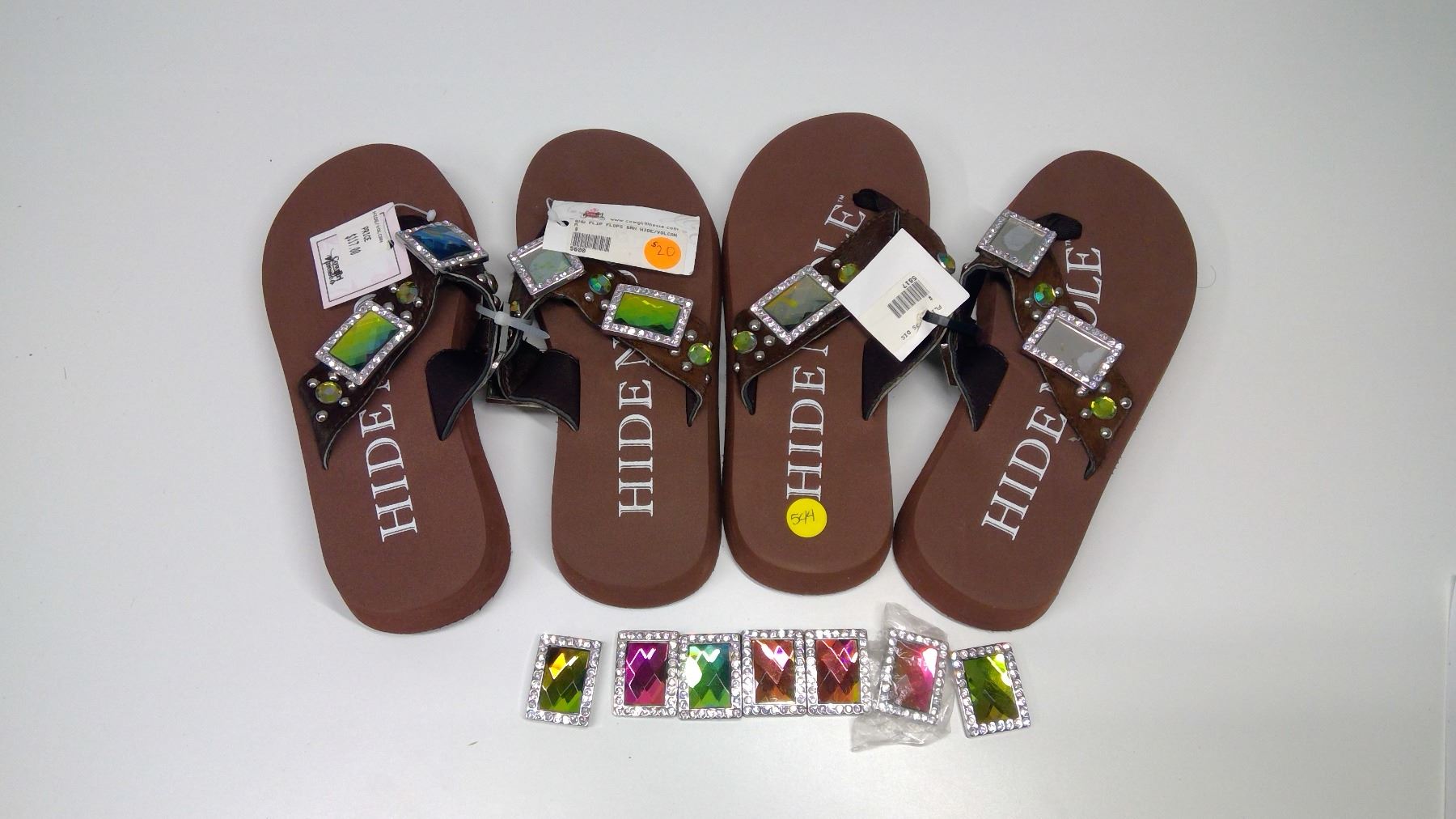 (2) Flip flops (Size: Medium with extra jewels/ some broken)
