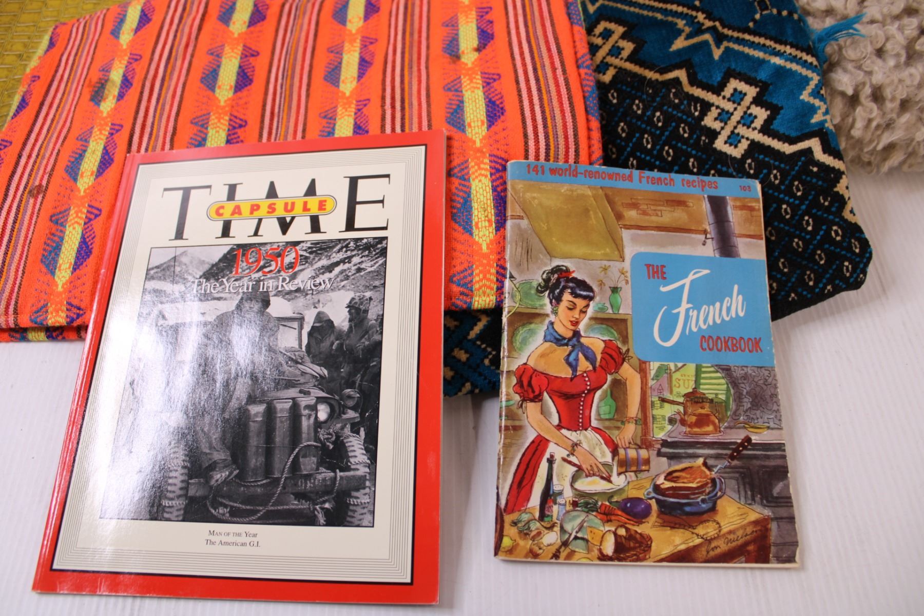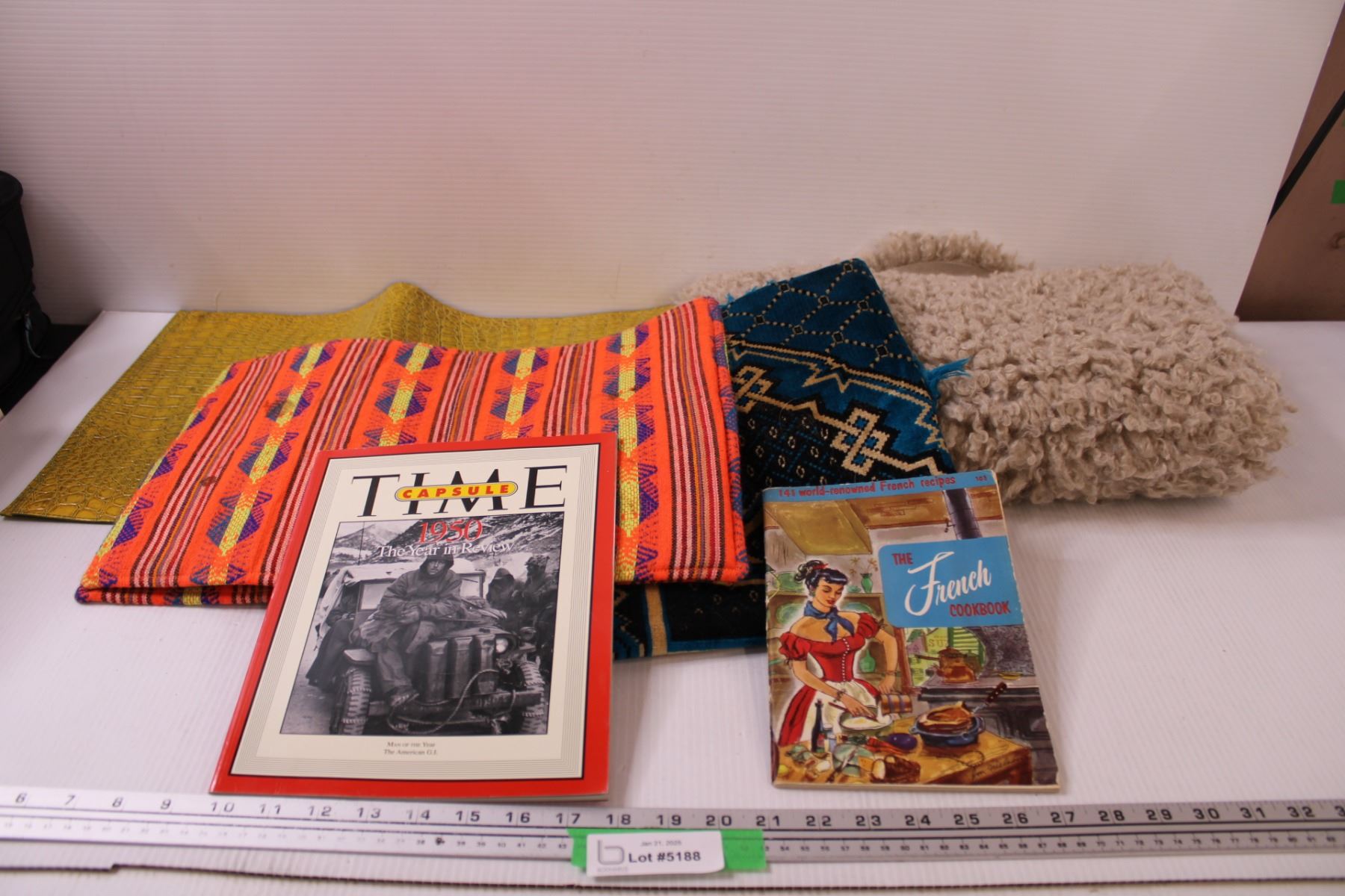 (2) Floor Rugs, (4) Table Placemats, Time Capsule Magazine (1950 Year in Review), French Cookbook