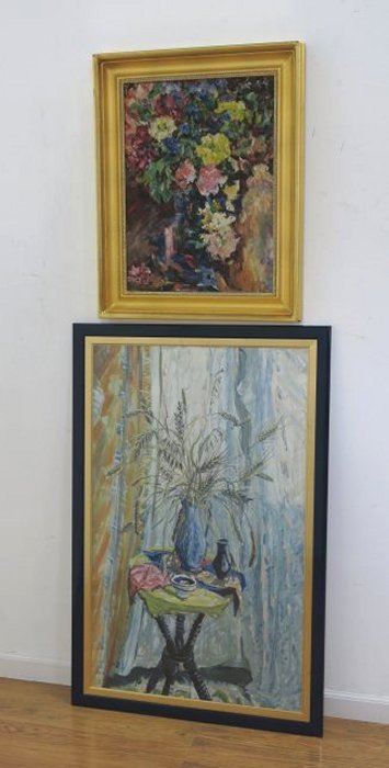 (1) Oil on board. Framed. Signed Scott Fogel on rear. Approx. 24" H x 18" W unframed, 30" H x 24" W framed. (1) Gouache on paper. Framed. Unsigned. Approx. 42" H x 26" W unframed, 47" H x 31" W framed. Property of a Bernardsville NJ collection (4069).