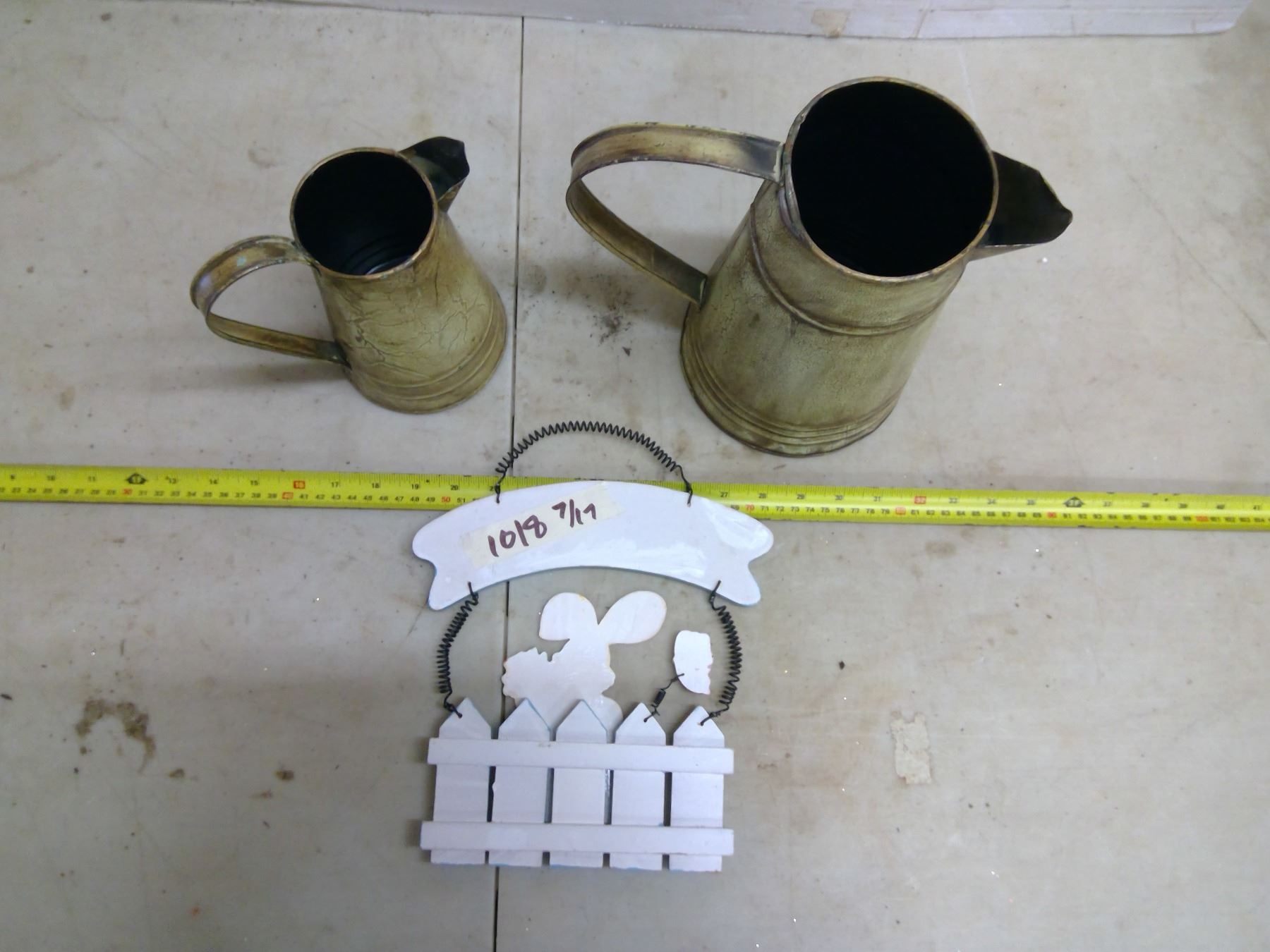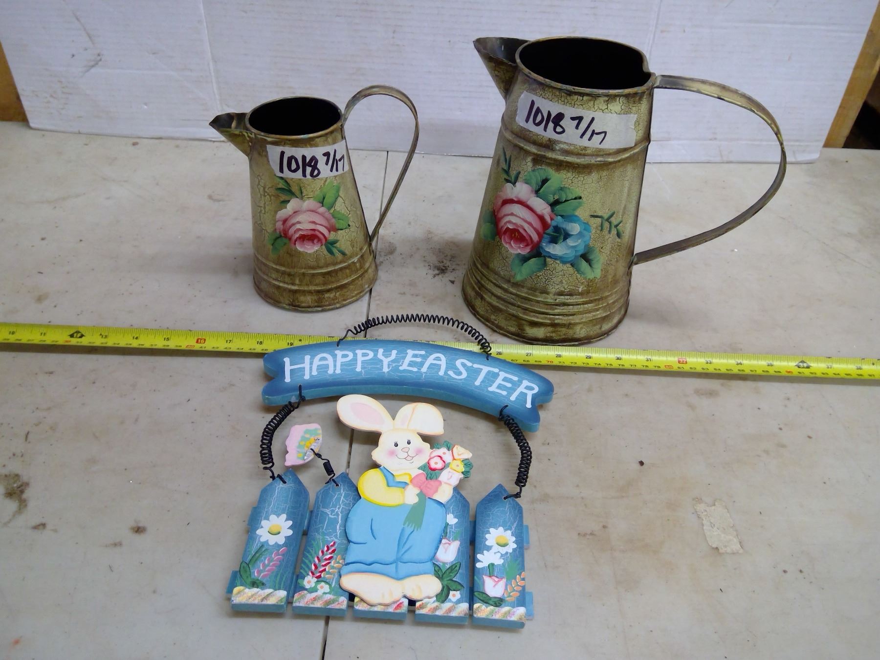 2 Flowerpots (Water Can Design) and Happy Easter Decoration