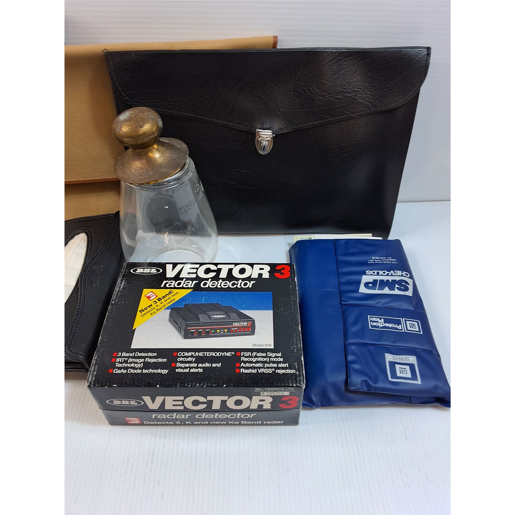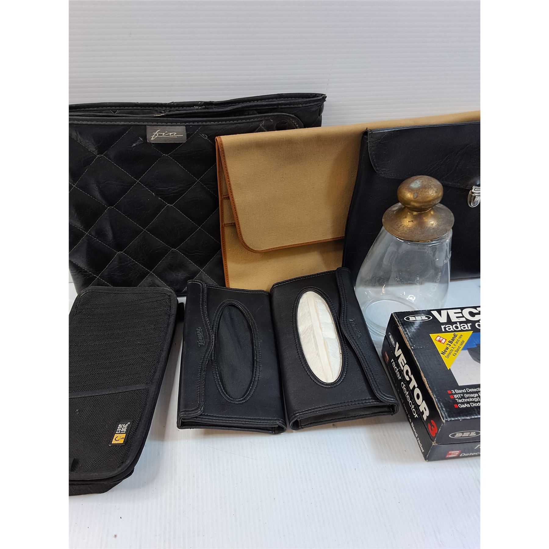 (2) Folders, Radar Detector, Visor Kleenex Holders, CD Holder, Misc