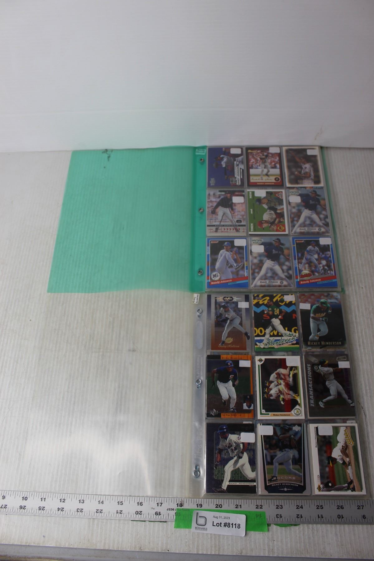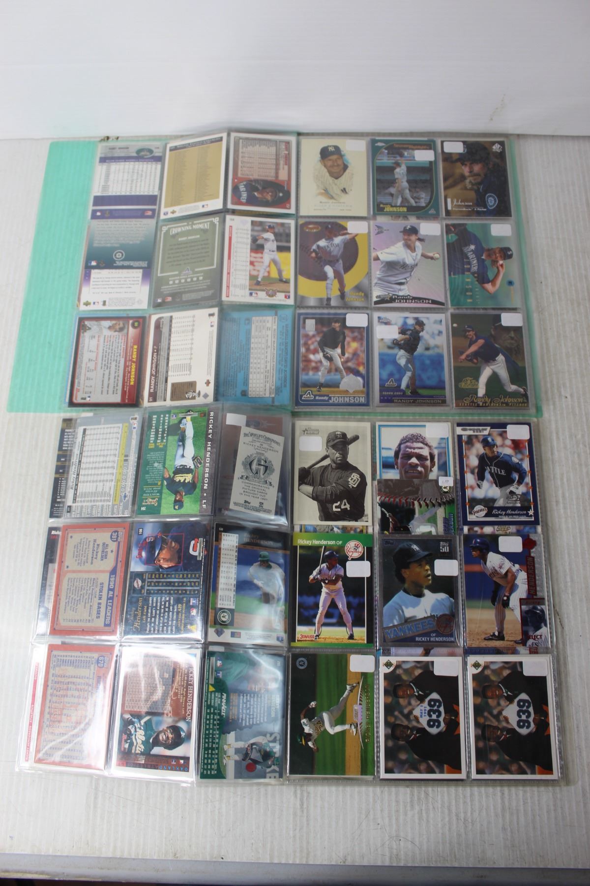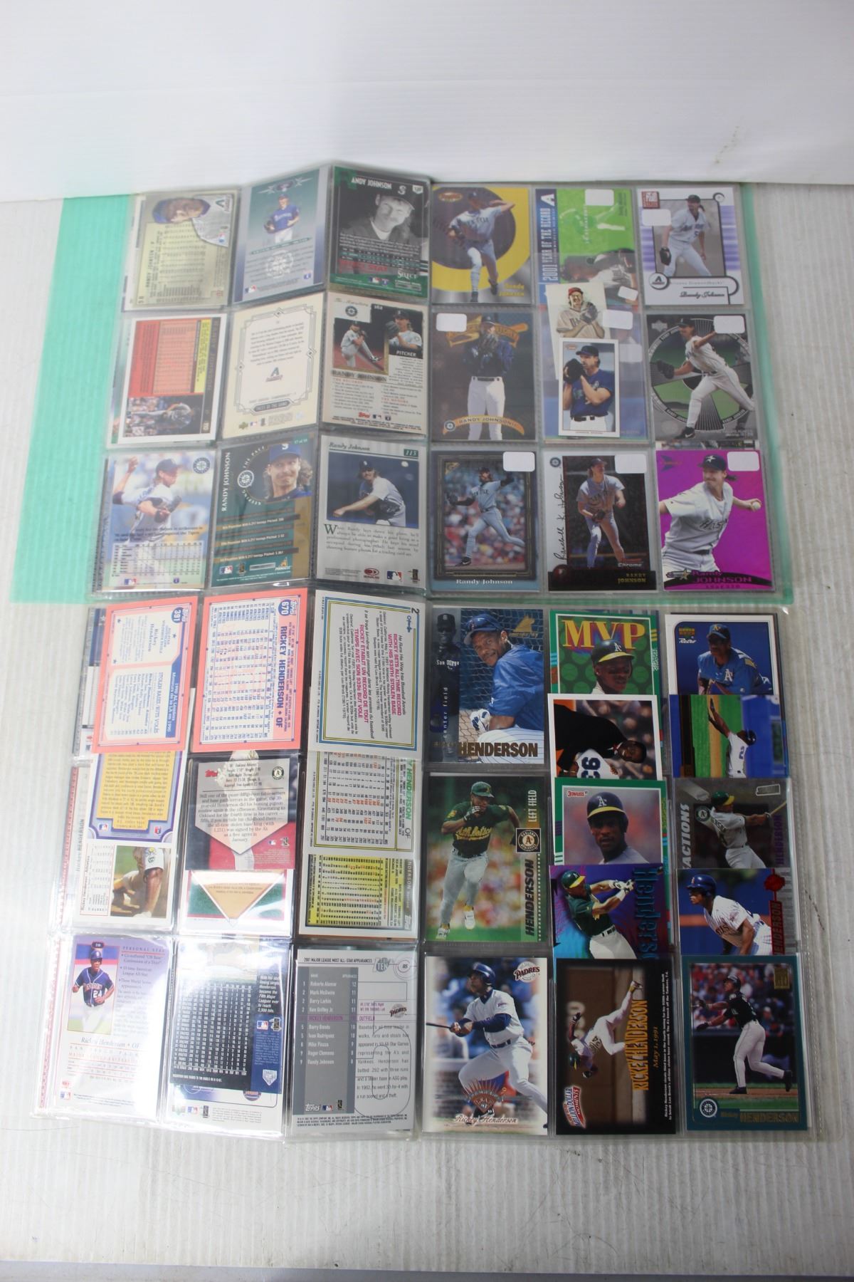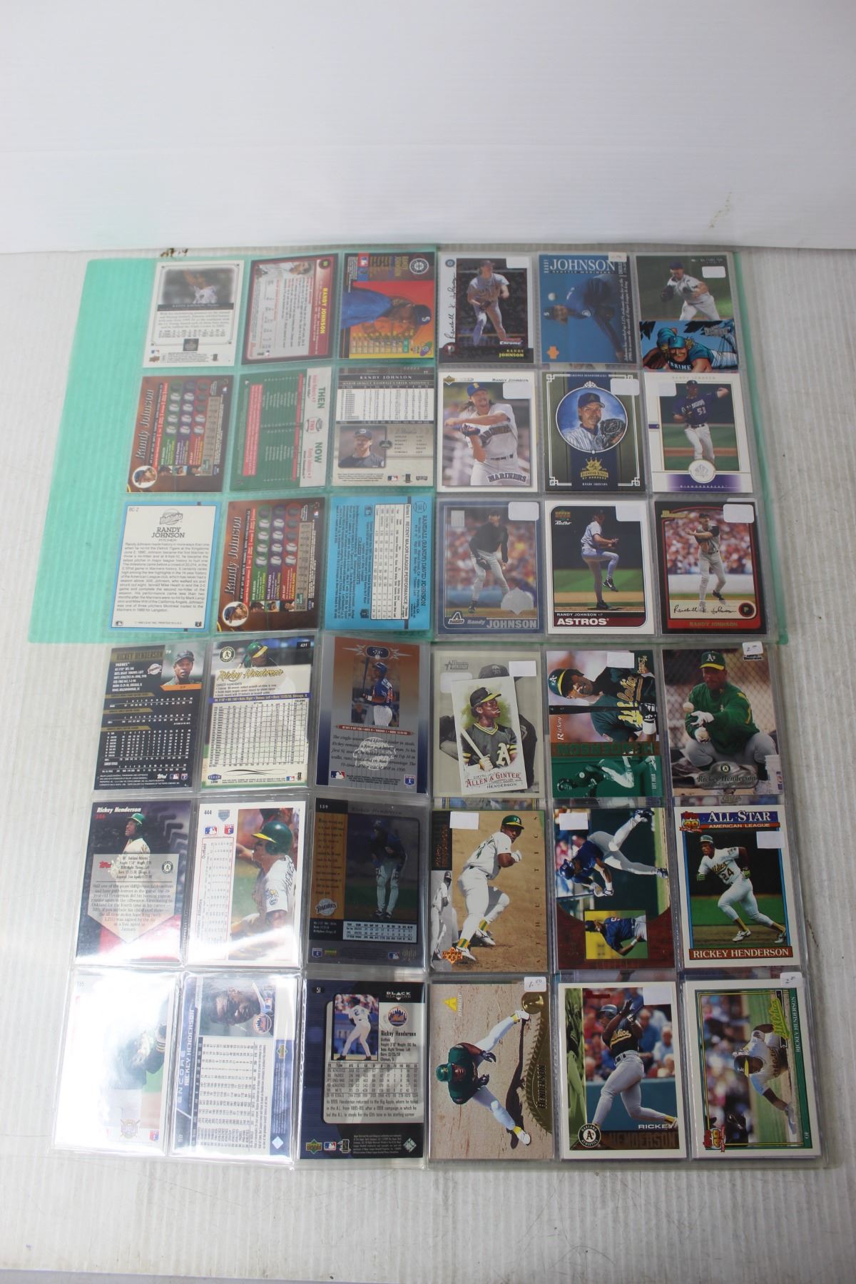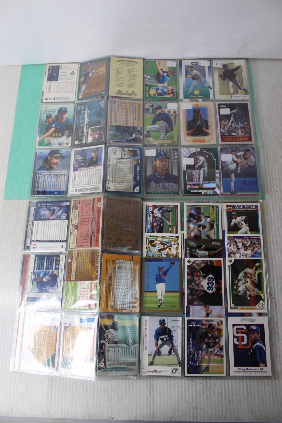 (2) Folders of MLB Trading Cards - Rickey Henderson, Randy Johnson