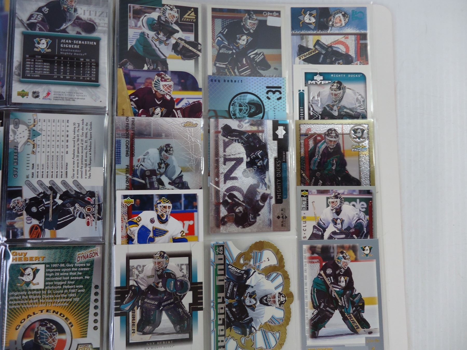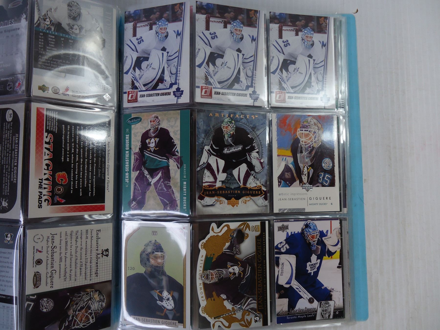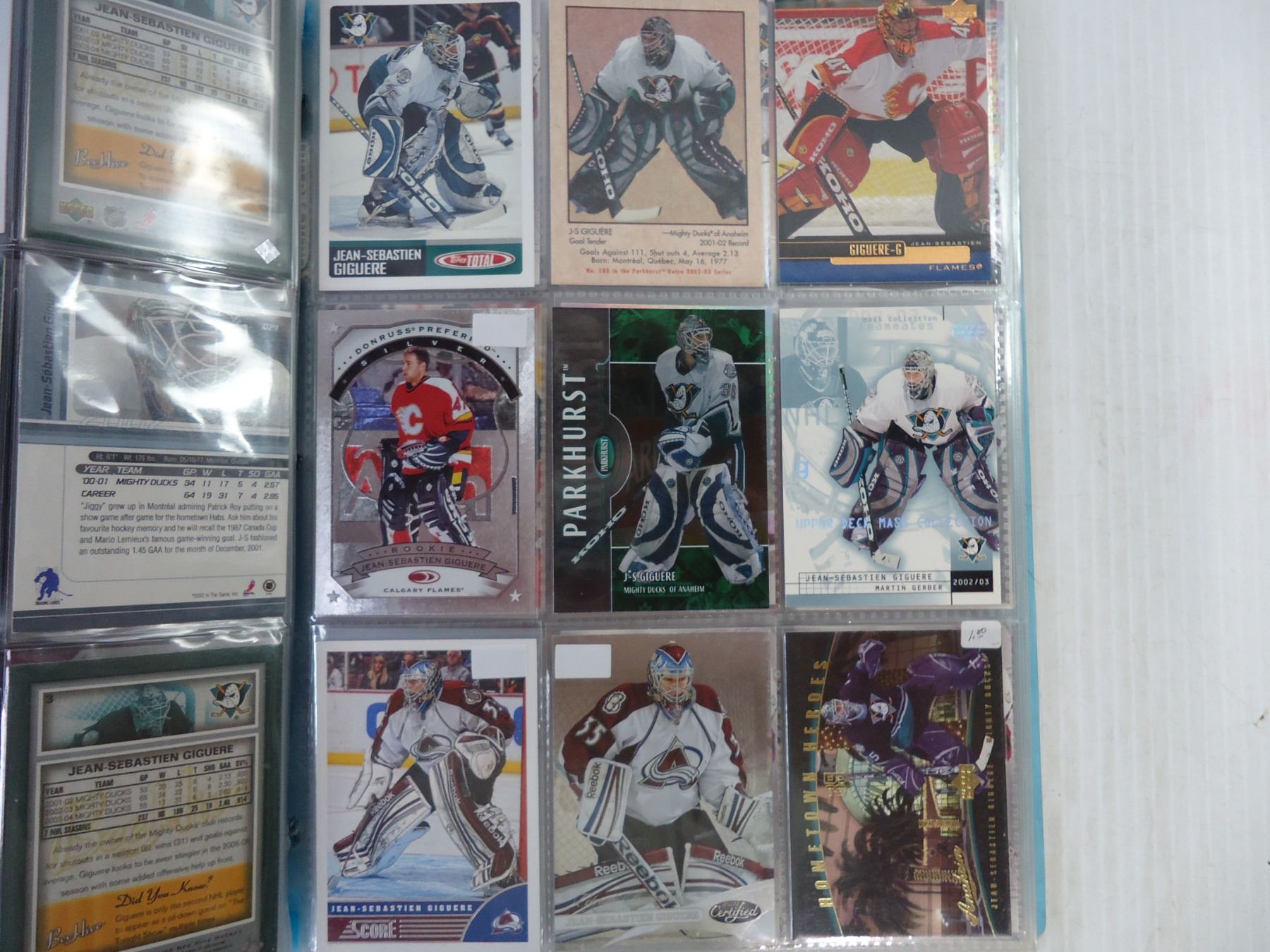 (2) Folders of NHL Cards Featuring J.S. Giguere and Guy Hebert