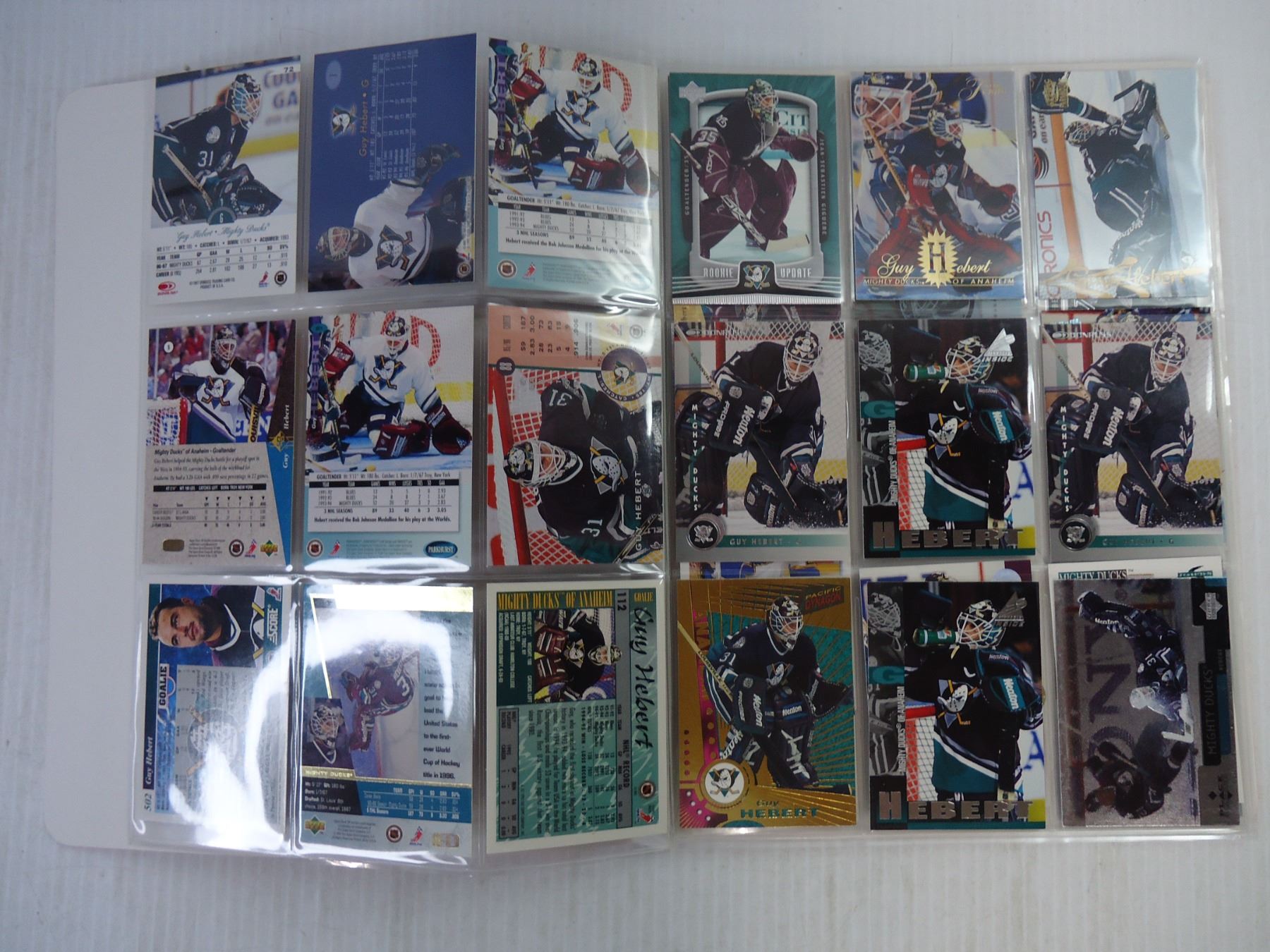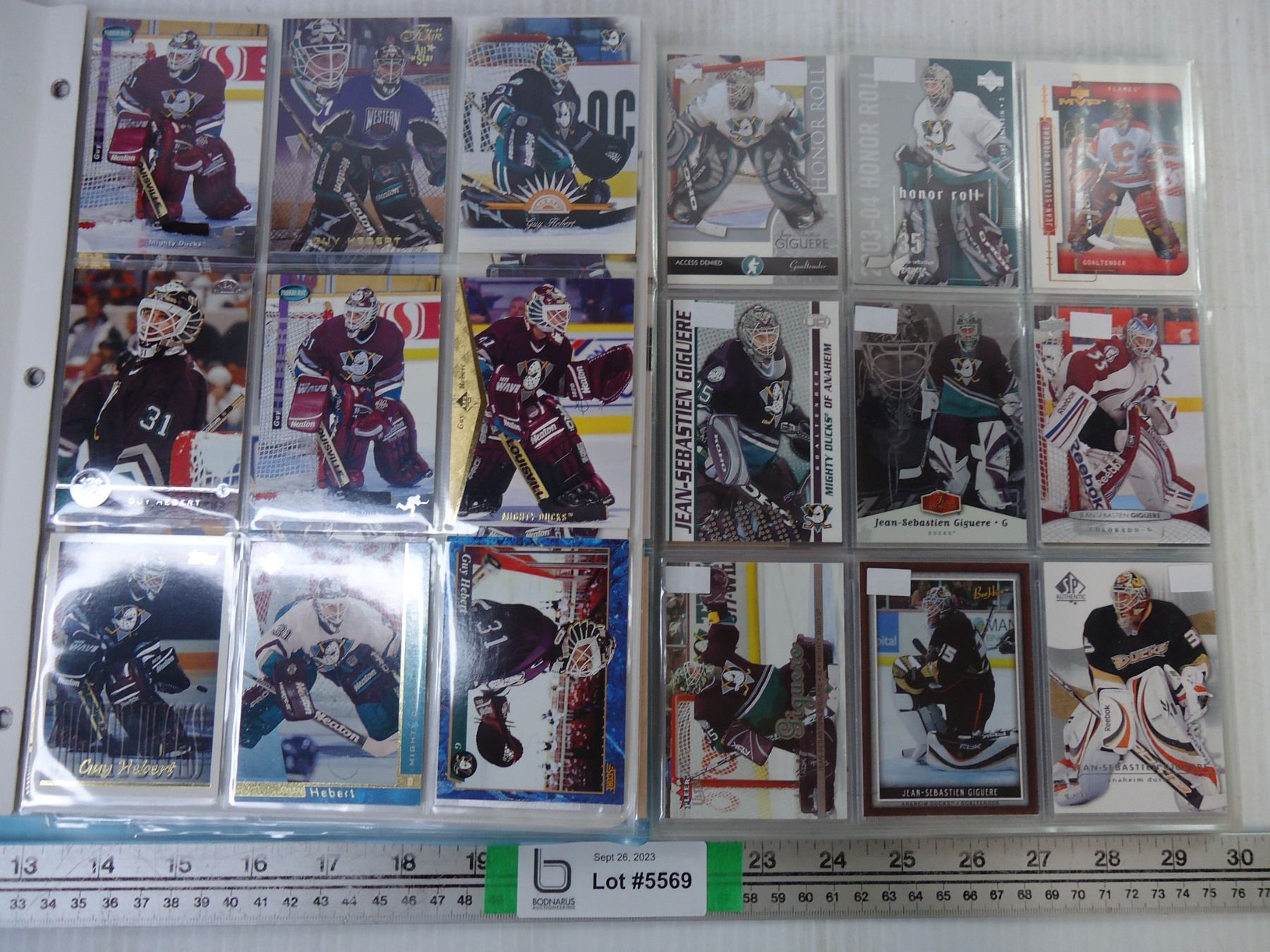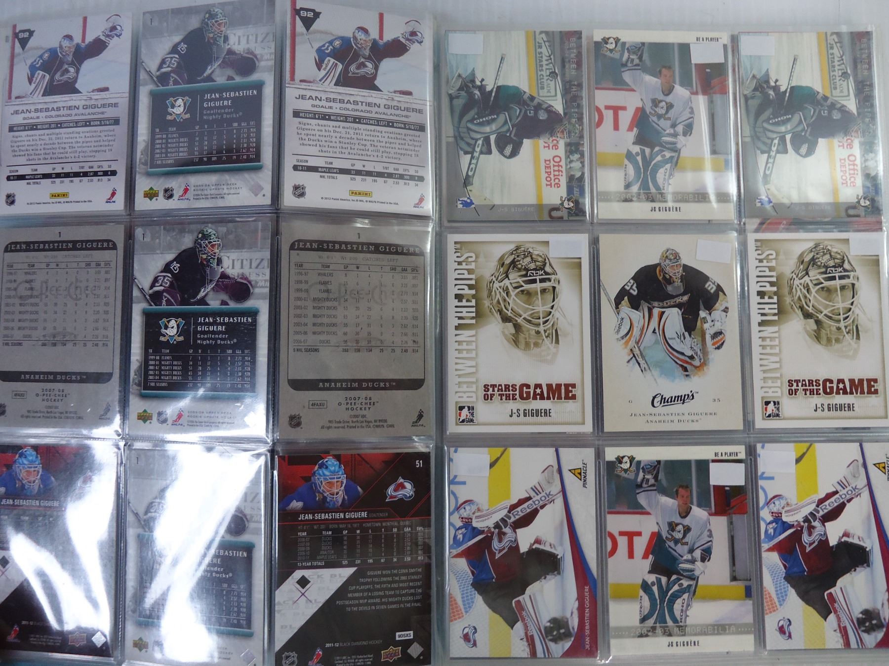 (2) Folders of NHL Cards Featuring J.S. Giguere and Guy Hebert