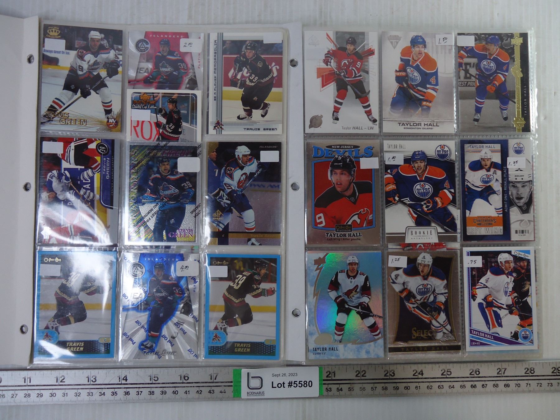 (2) Folders of NHL Cards Featuring Taylor Hall and Travis Green