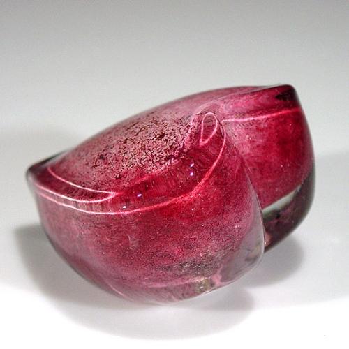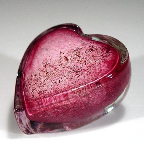 Andrew Fote clear-encased heart-shaped paperweight, in mottled red, pink, brown, and white. Signed. Width 2 1/2". NO RESERVE