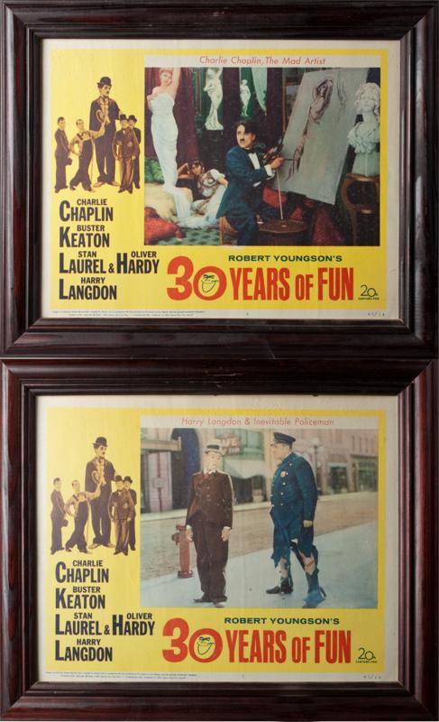 Includes "Charlie Chaplin, The Mad Artist," and "Harry Langdon & Inevitable Policeman." Both framed, 13.75" H x 16.5" W.