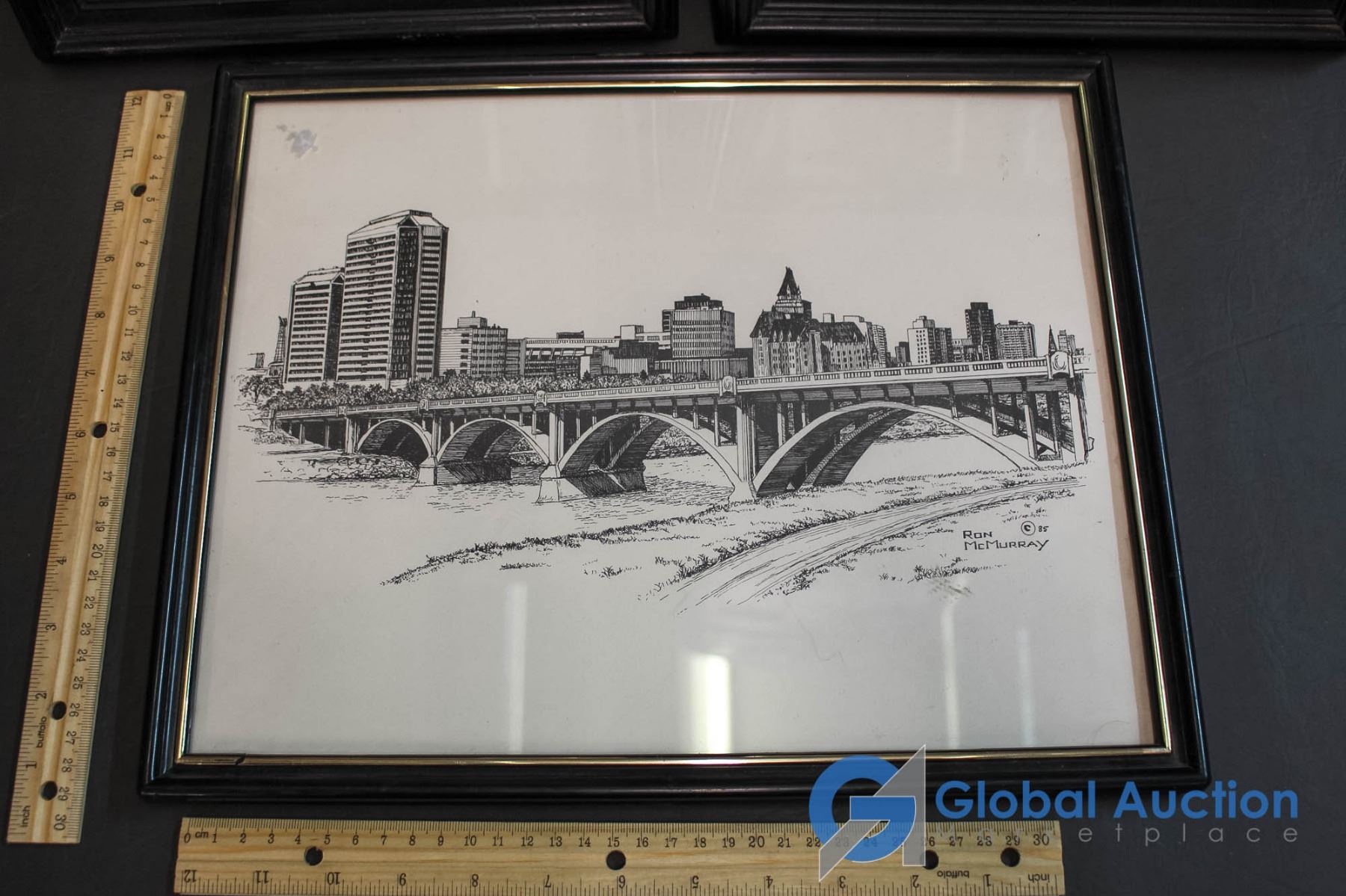 (2) Framed Courtfield Hotel Menus & 1985 Saskatoon Drawing