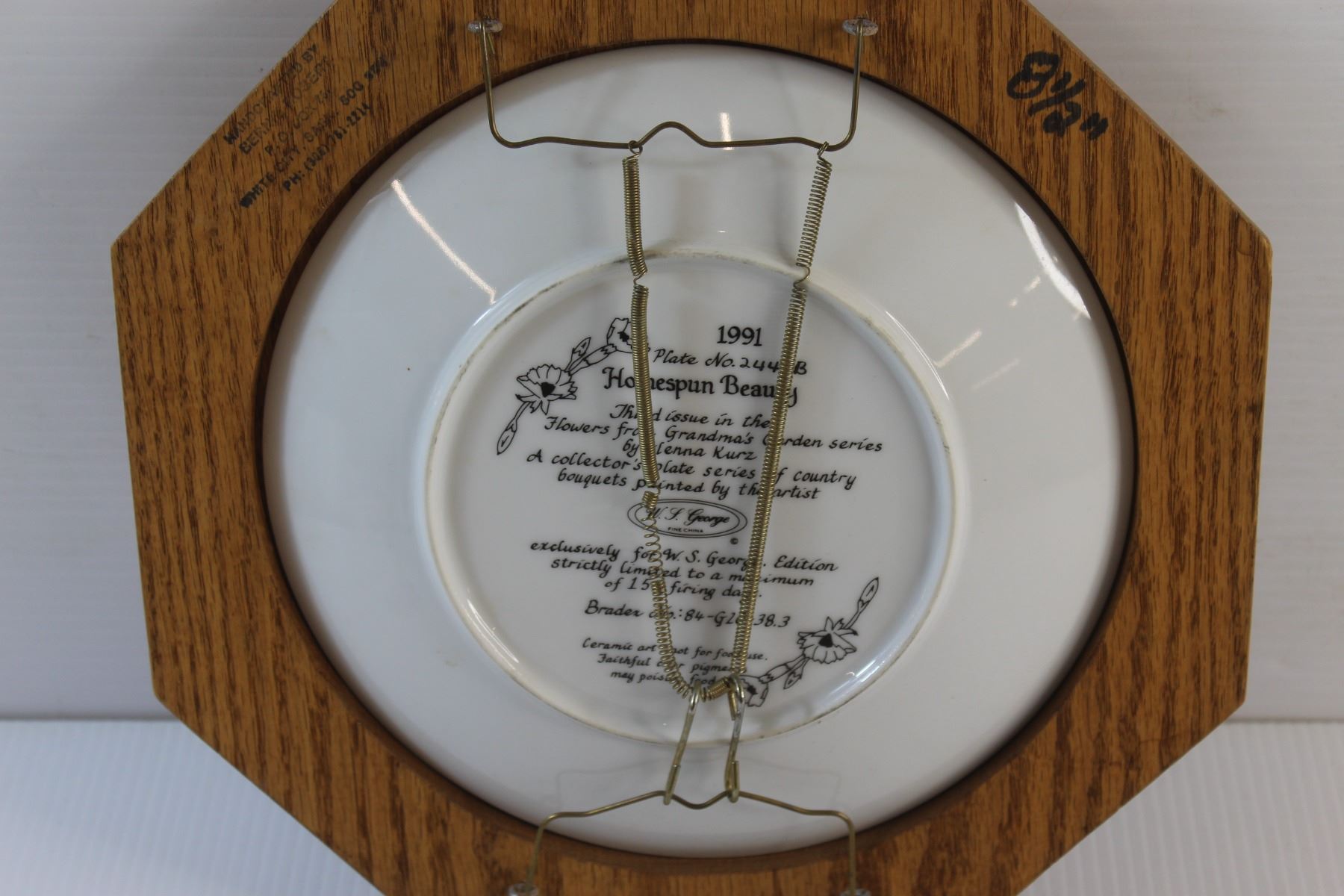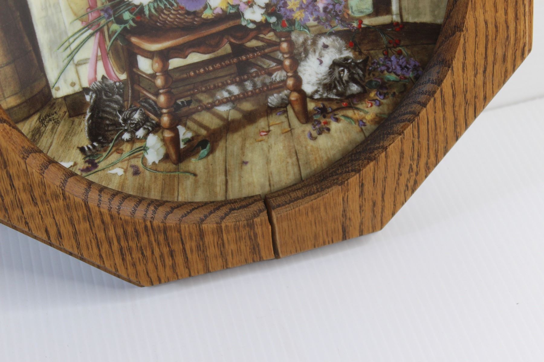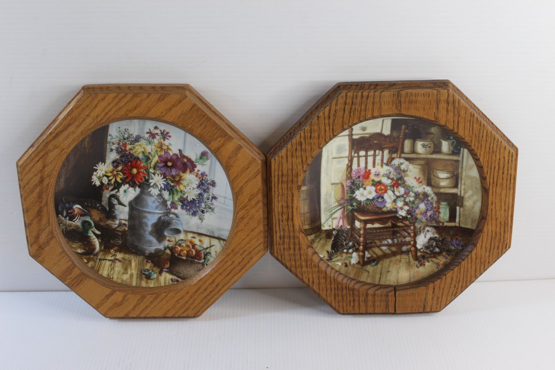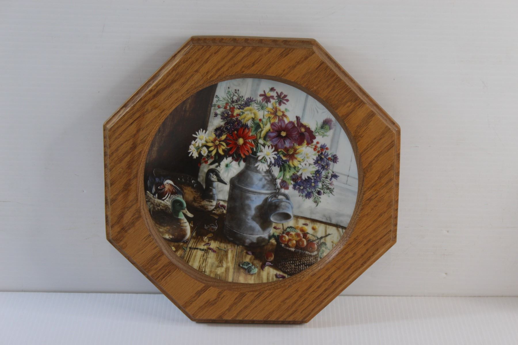 (2) Framed Decorative Wall Hanging Plates - Some Damage and Wooden Lazy Susan