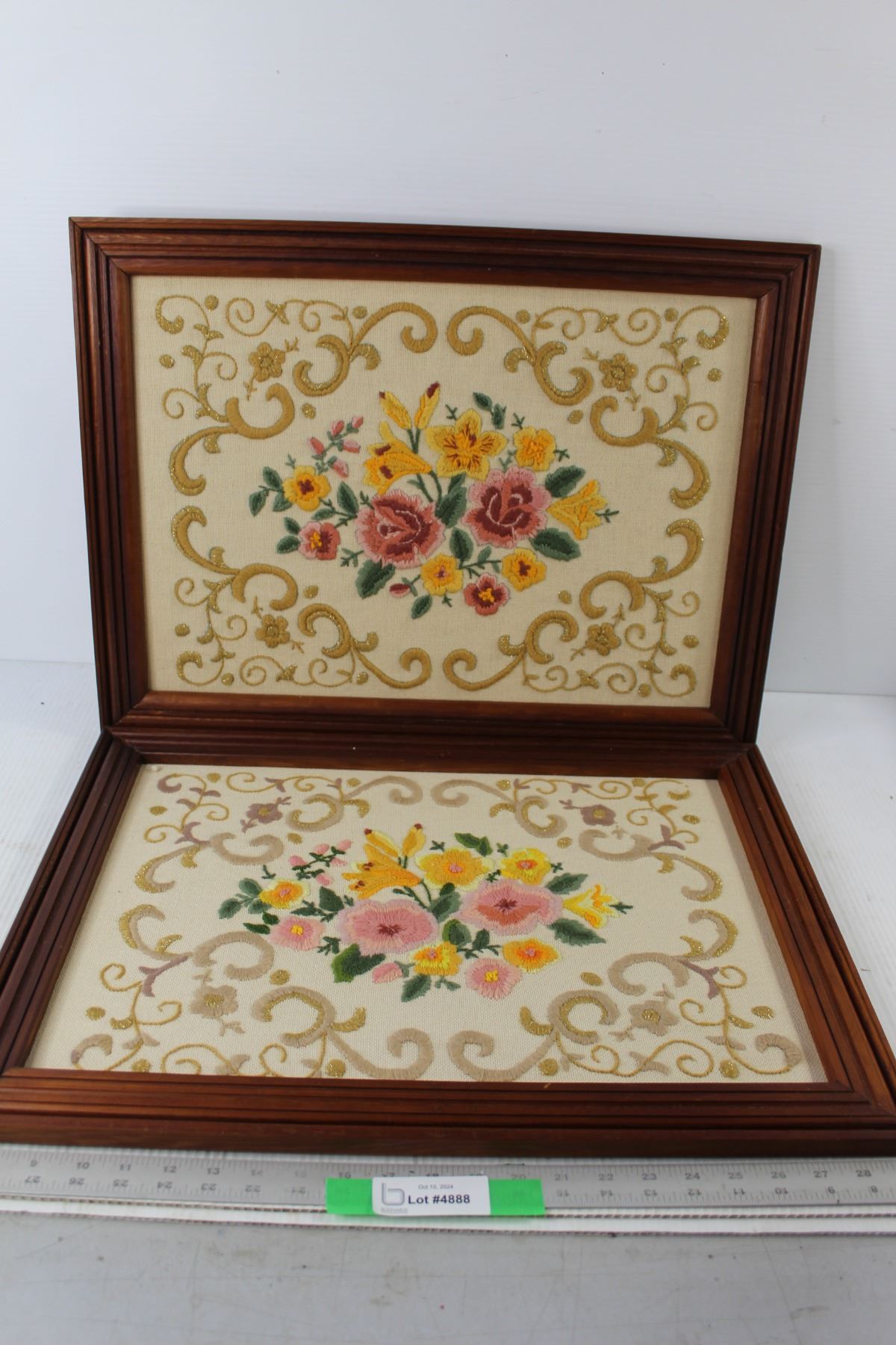 (2) Framed Embroidery Art - Both 17" x 24"
