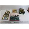 (2) Framed LEGO-Themed Prints, (2) Books, Box of Toy Army Men