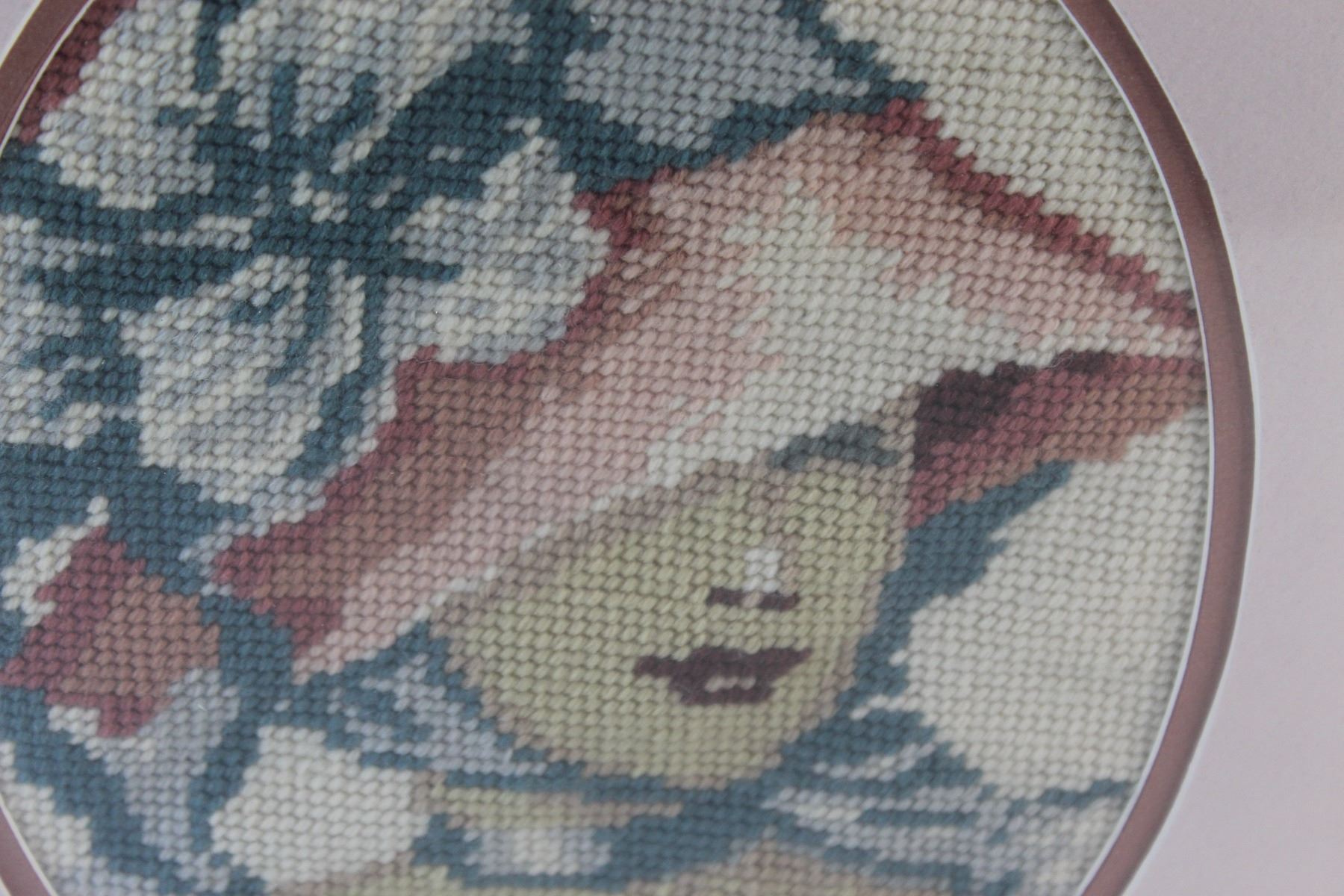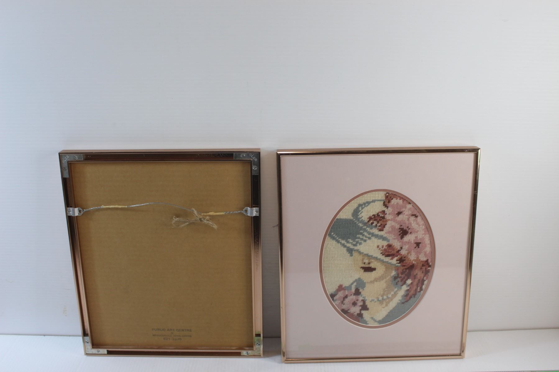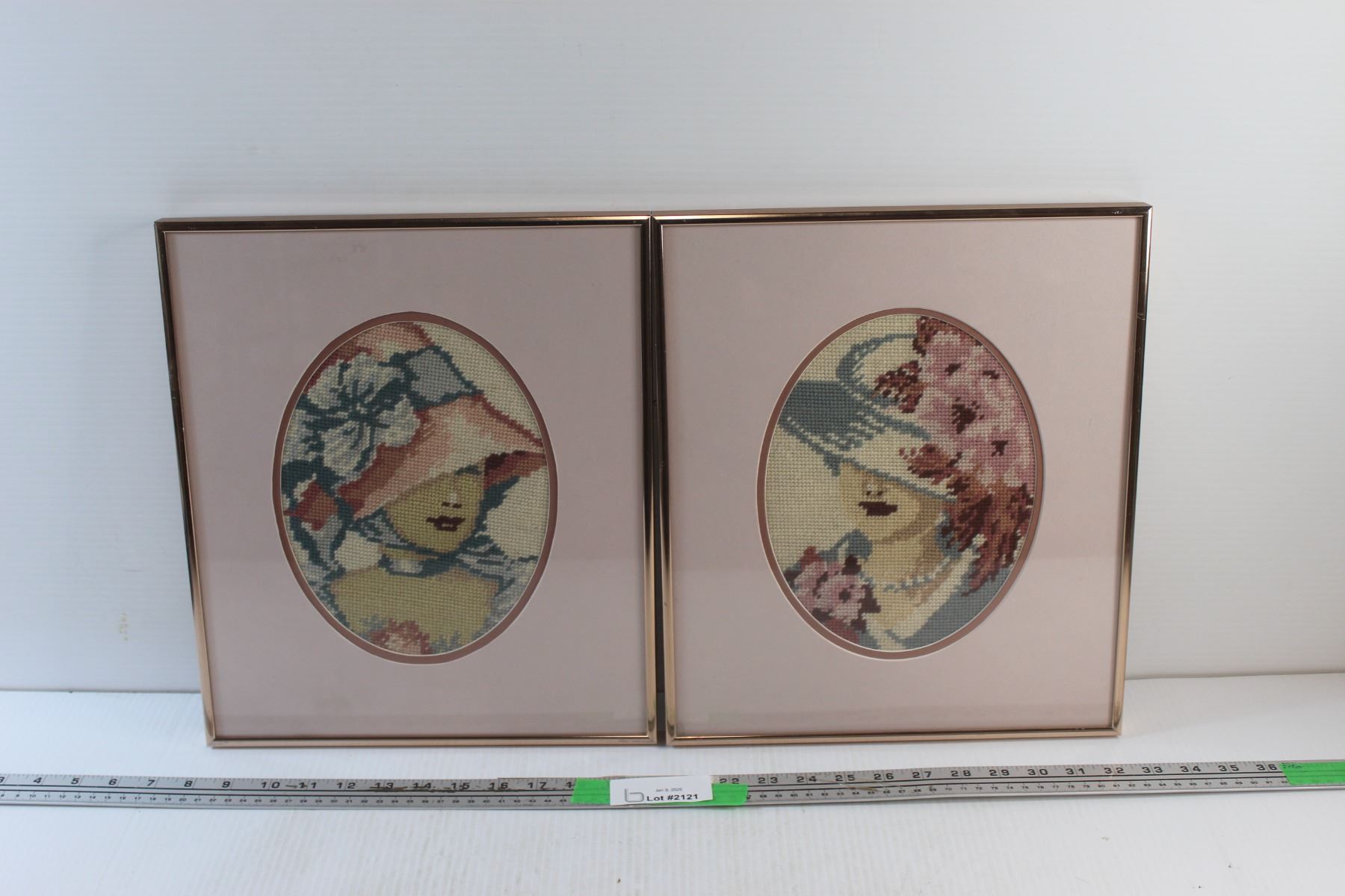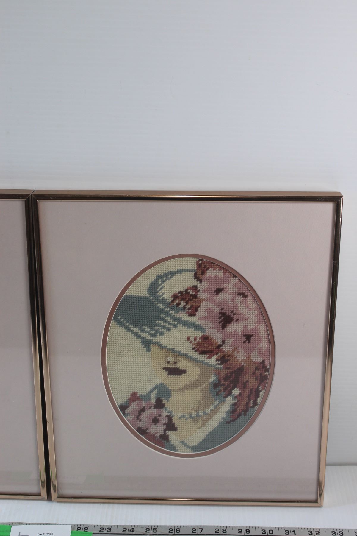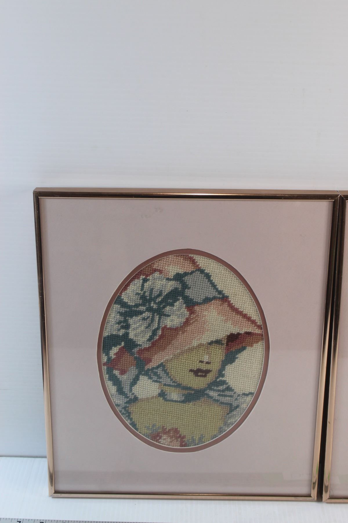 (2) Framed Ladies in Bonnets Embroidery Arts 14'' x 12''