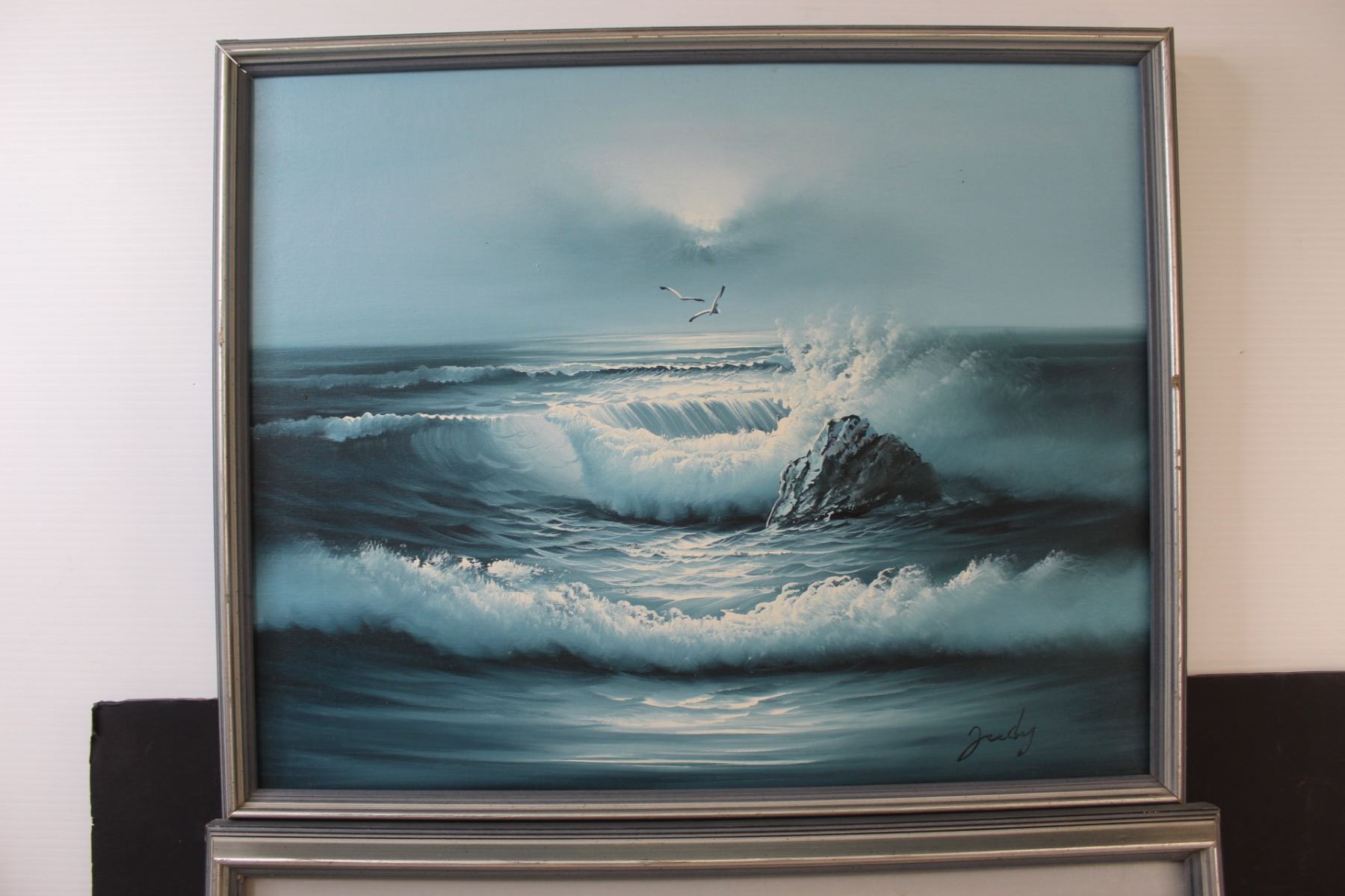 (2) Framed Ocean Scene Canvas Prints - 17.5x22