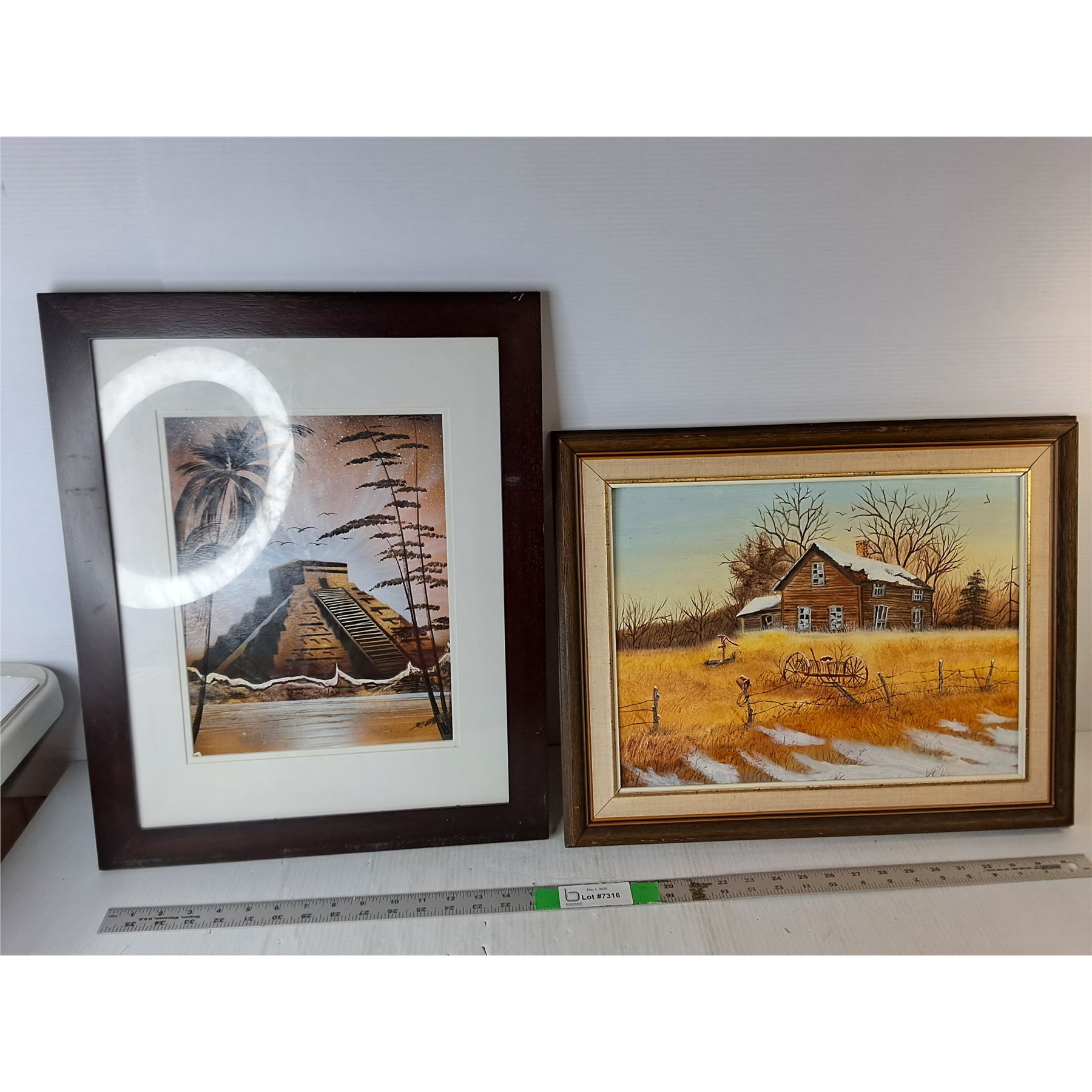 (2) Framed Paintings- Aztec & Homestead Up to 21  x 16.75 , Pickup Preferred