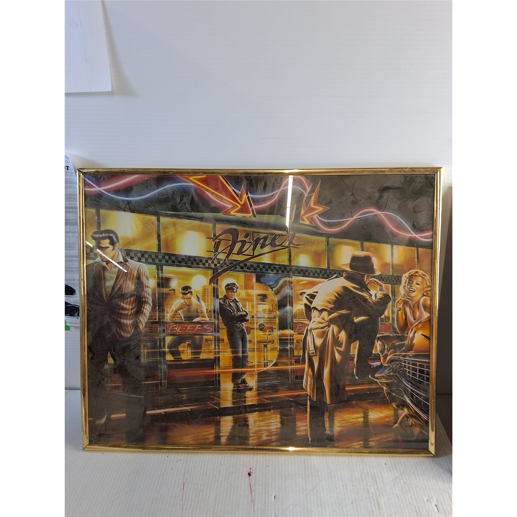 (2) Framed Pictures - 50's Diner 20  x 16 / Red Car 20  x 16