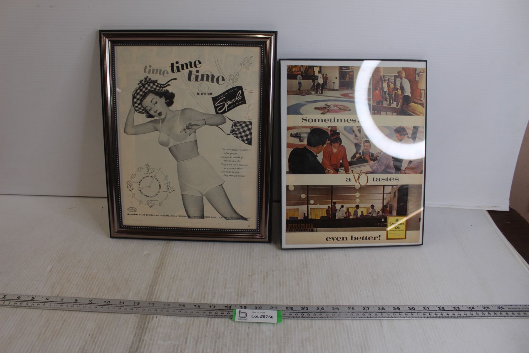 (2) Framed Vintage Advertisements - 12 1/4" x 15 3/4", 11 1/4" x 14 1/4"