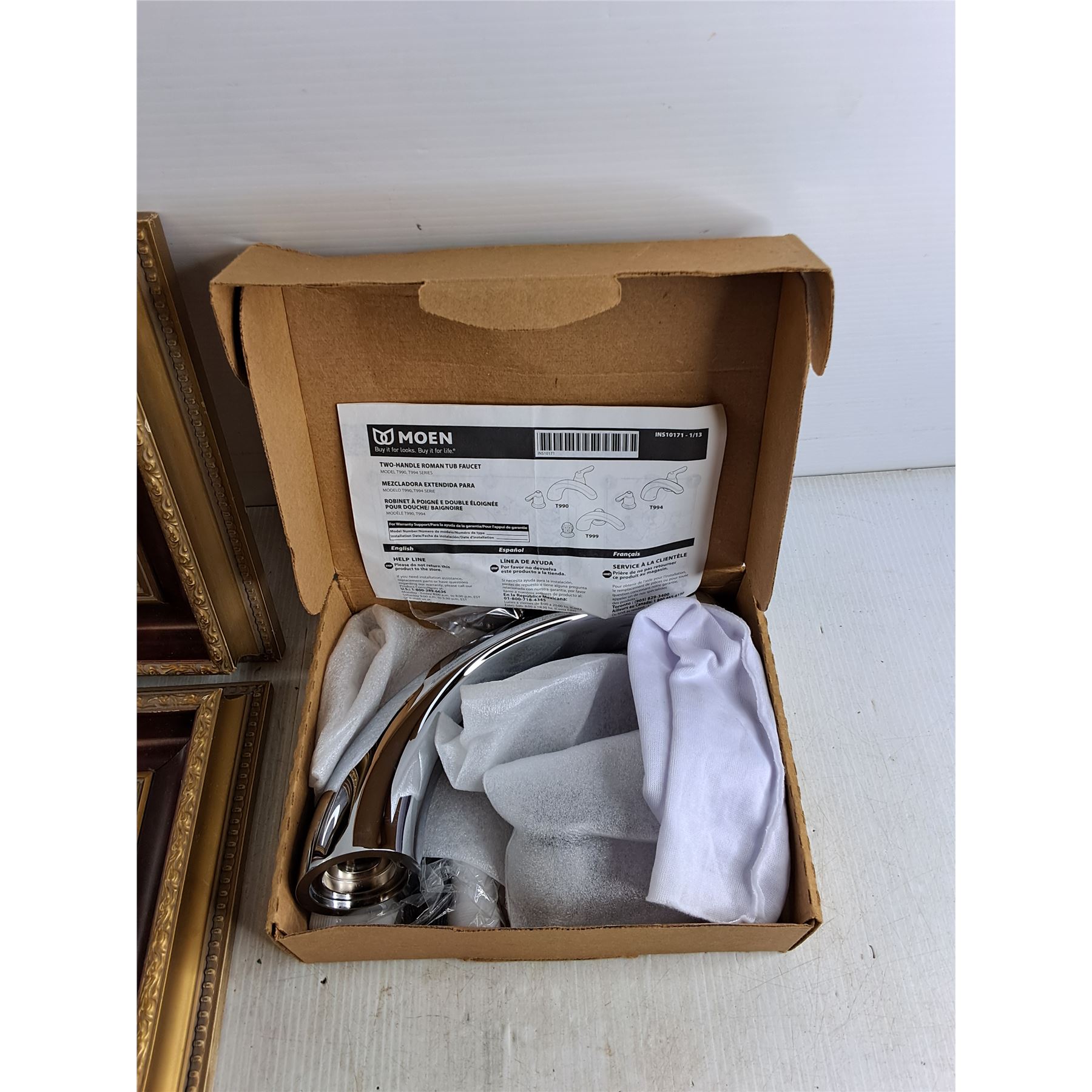 (2) Framed Wall Art Prints 13" x 11", Two Handle Roman Tub Faucet