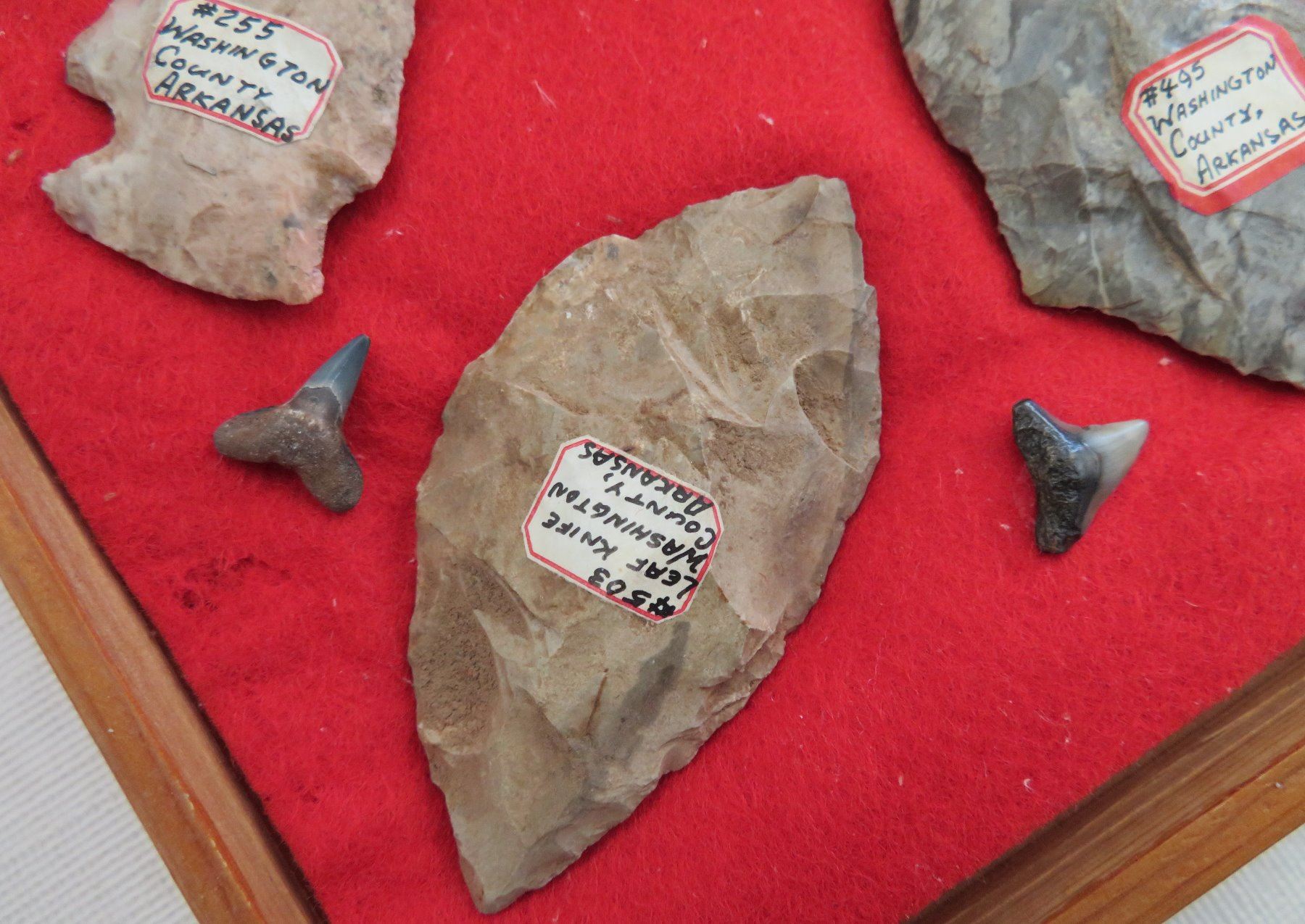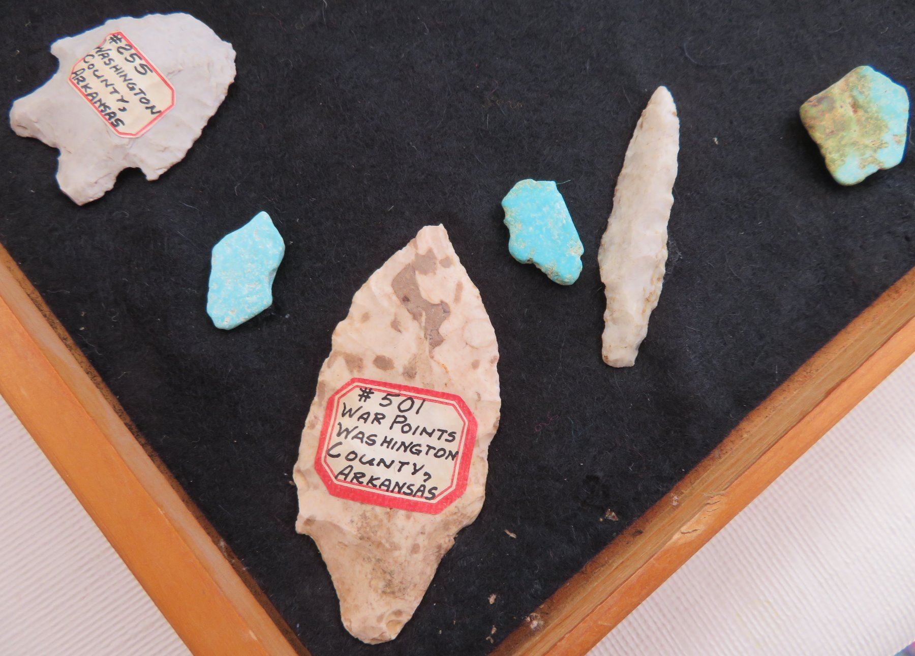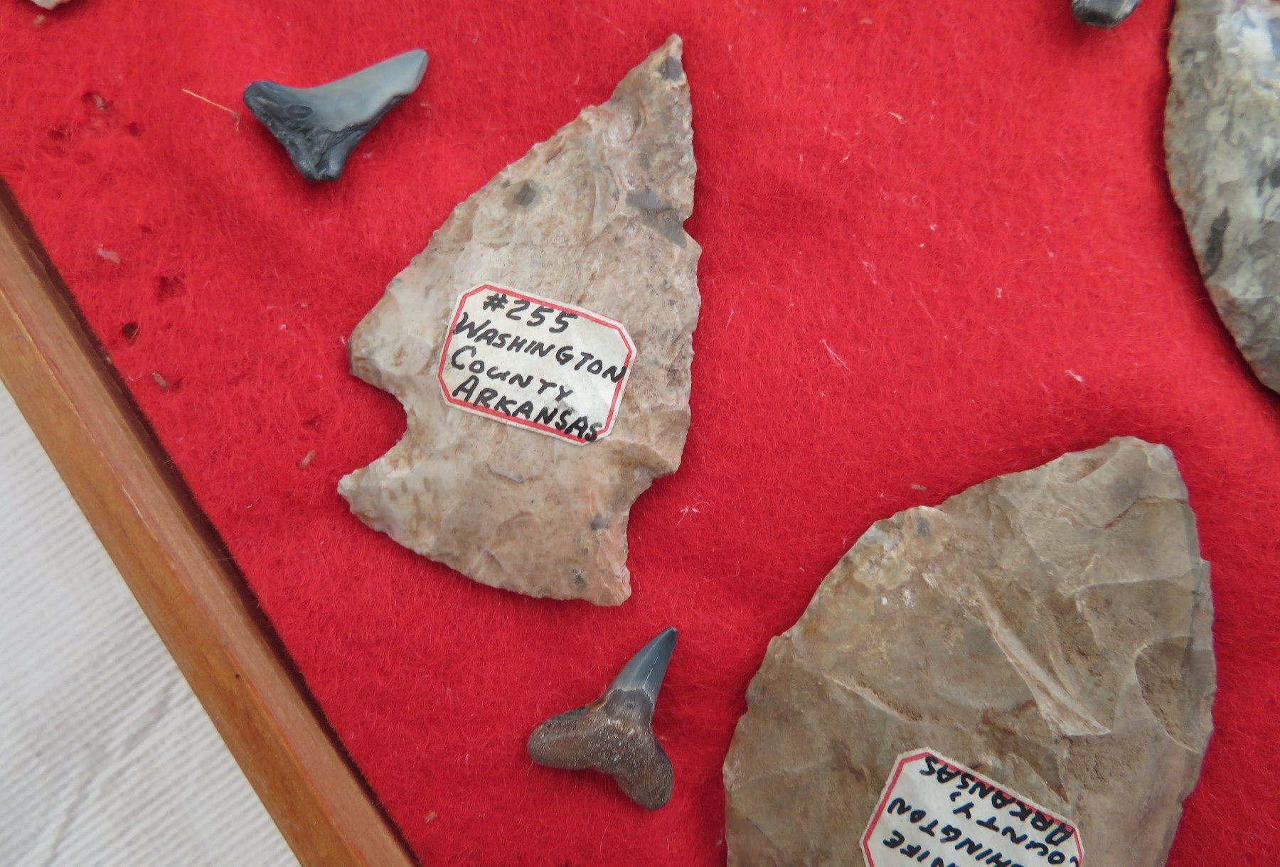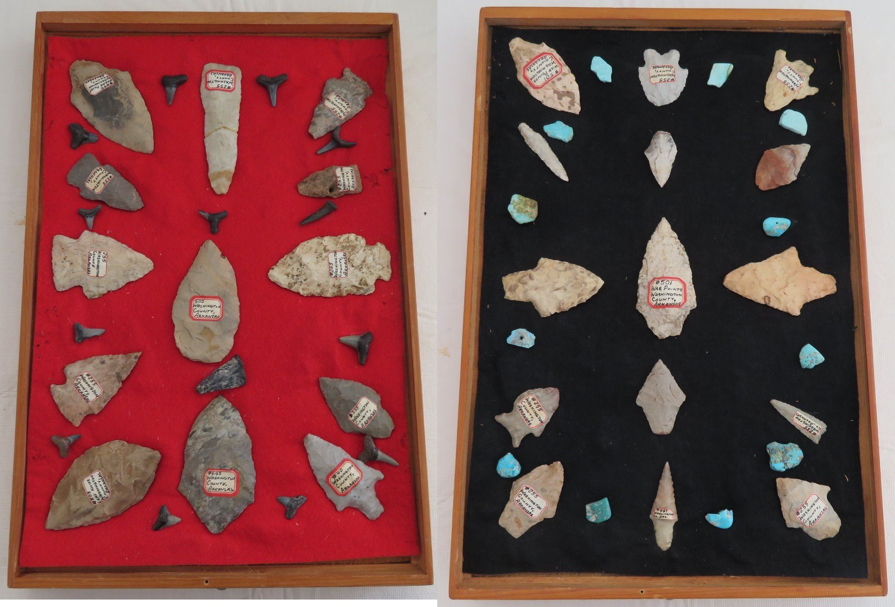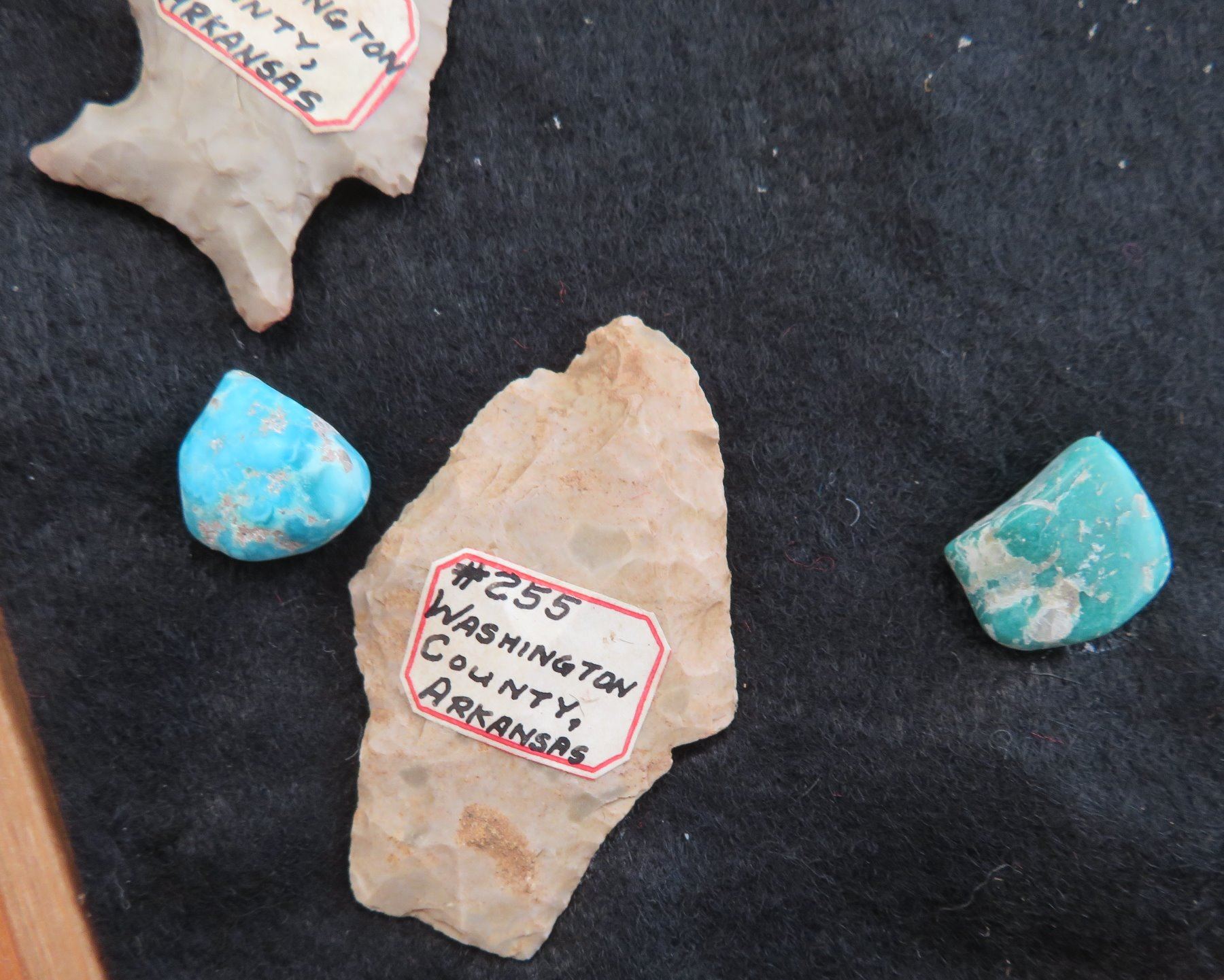 2 Frames of Artifacts, archaic period. Made of chert, the longest measures 3". Washington County, Arkansas. Over 25 points. Frames not included. Condition: As found, see images. Shipping: $22.50 w/insurance and signature.