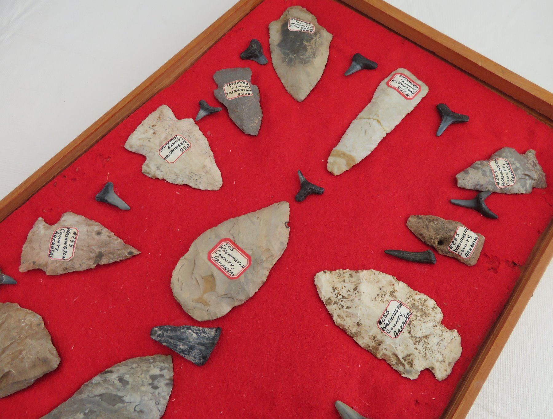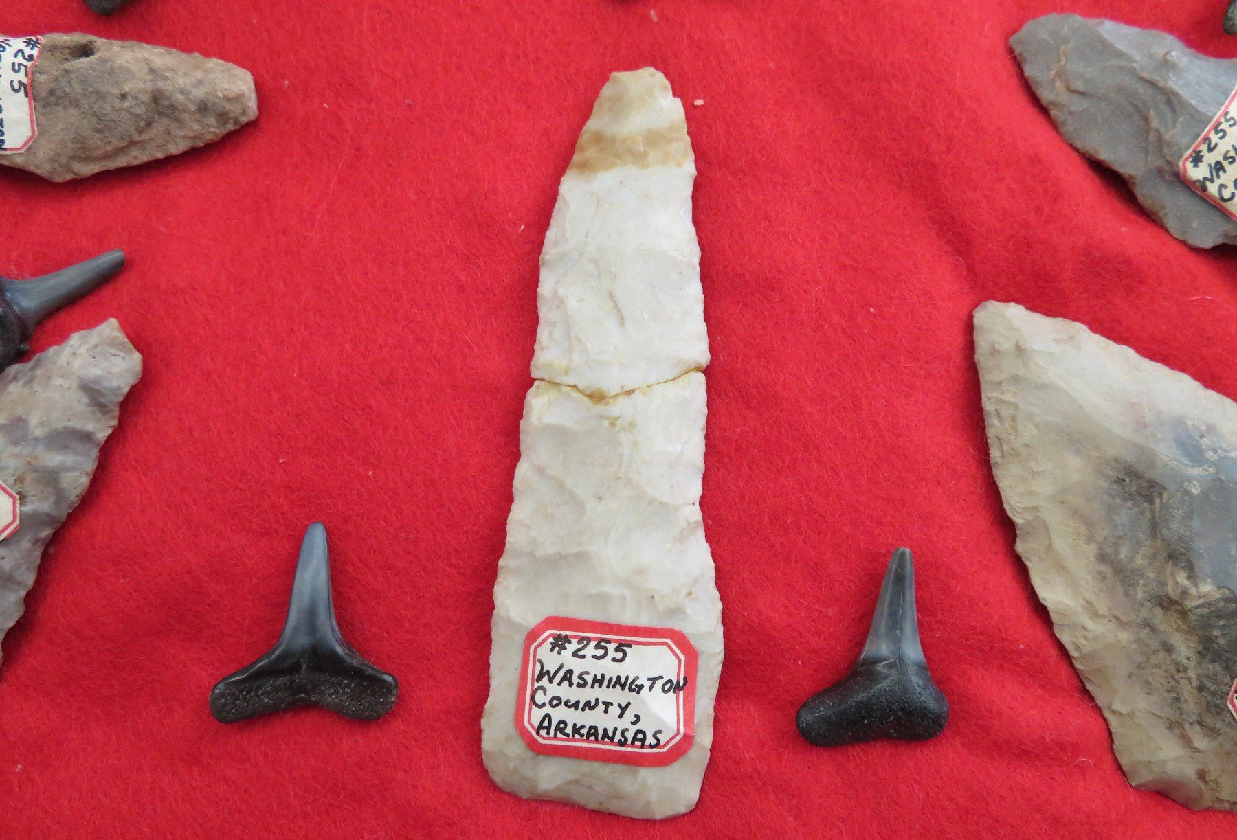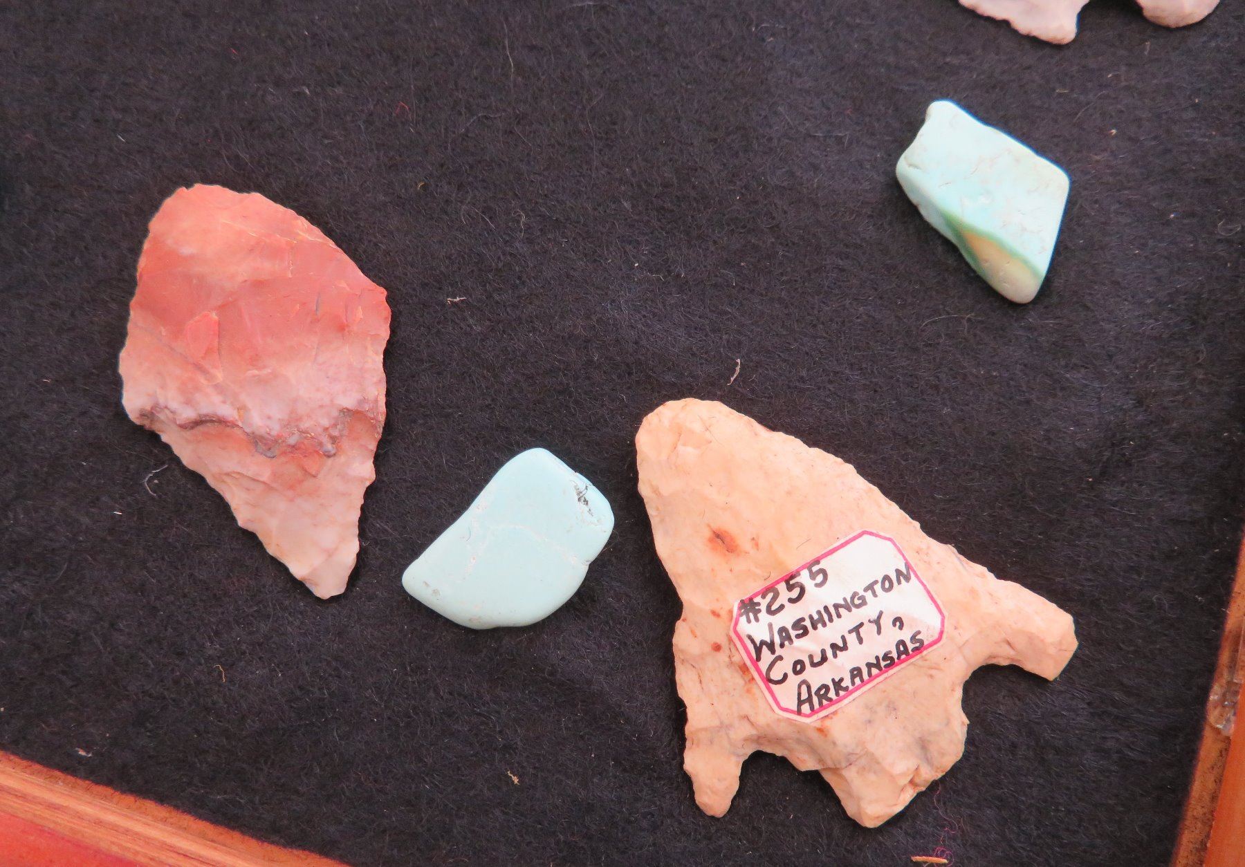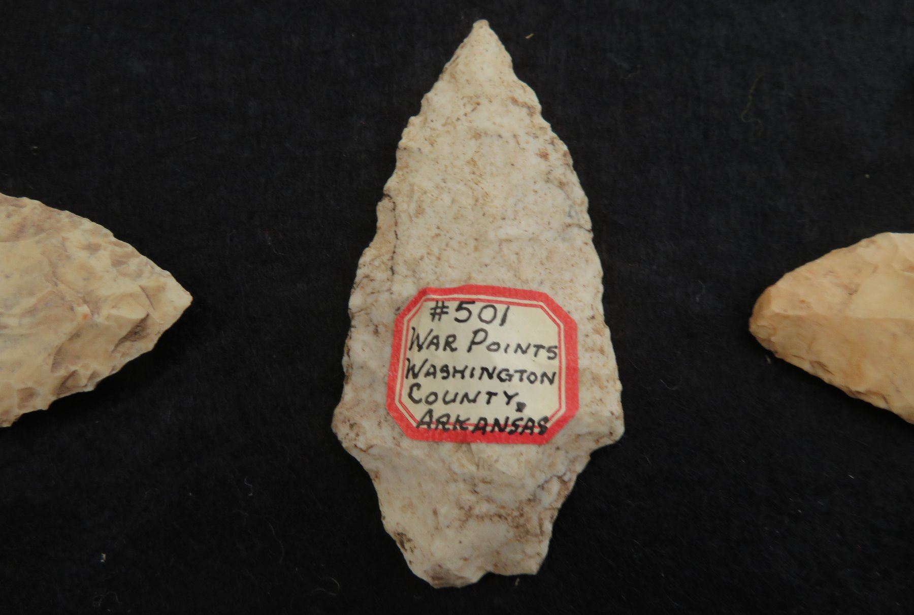 2 Frames of Artifacts, archaic period. Made of chert, the longest measures 3". Washington County, Arkansas. Over 25 points. Frames not included. Condition: As found, see images. Shipping: $22.50 w/insurance and signature.