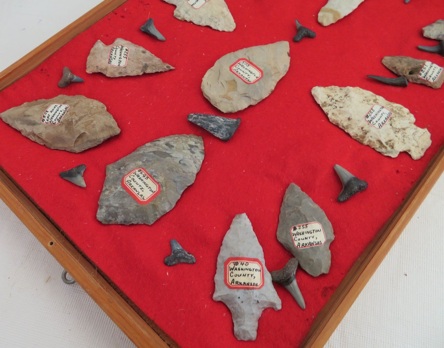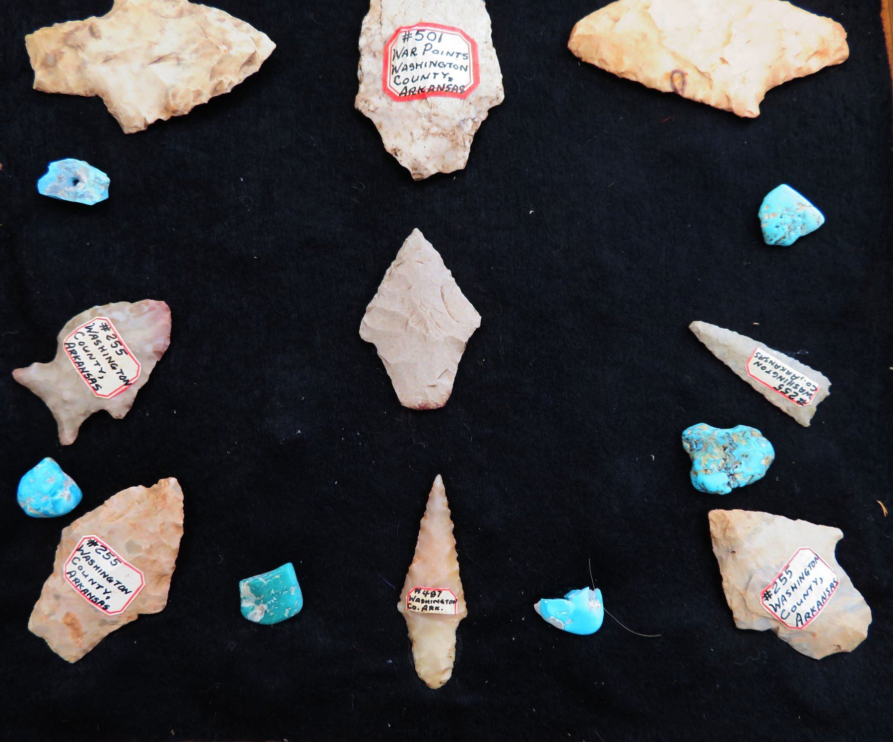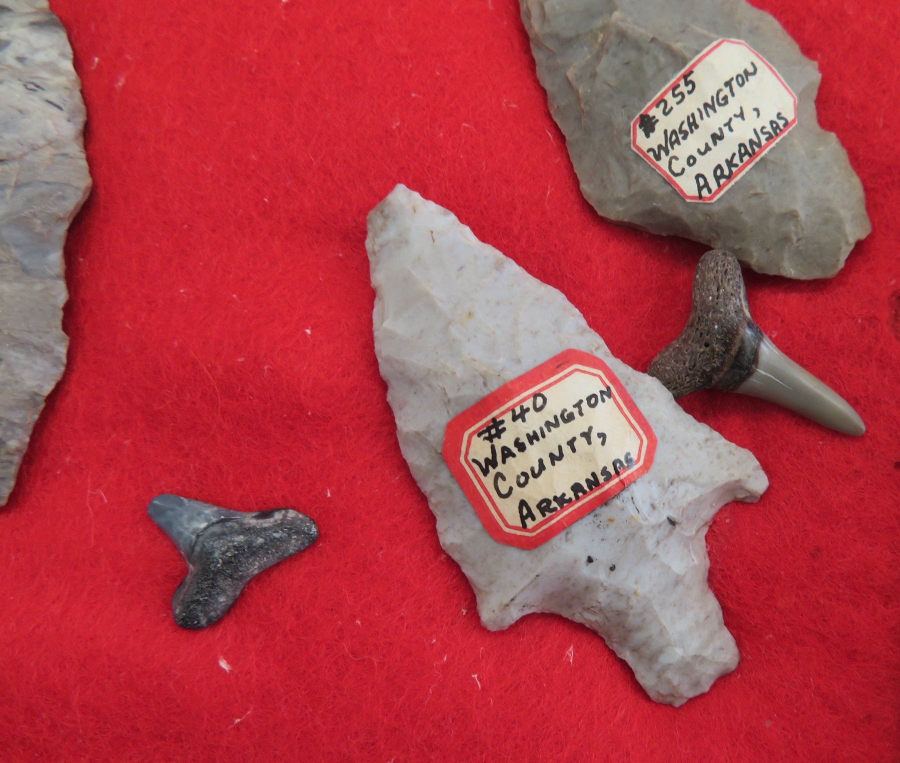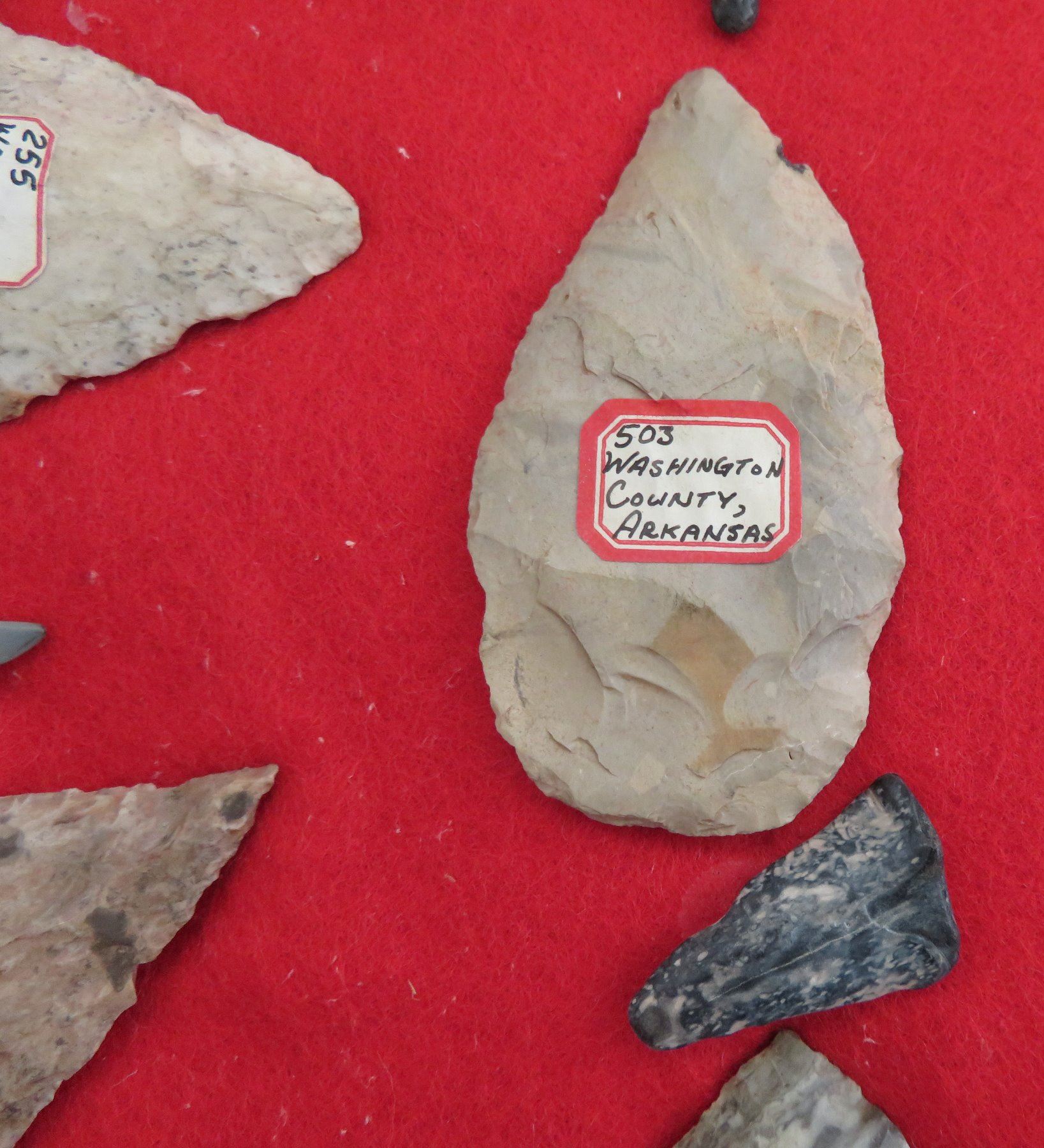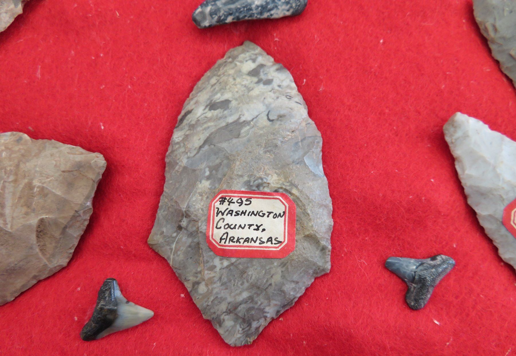 2 Frames of Artifacts, archaic period. Made of chert, the longest measures 3". Washington County, Arkansas. Over 25 points. Frames not included. Condition: As found, see images. Shipping: $22.50 w/insurance and signature.