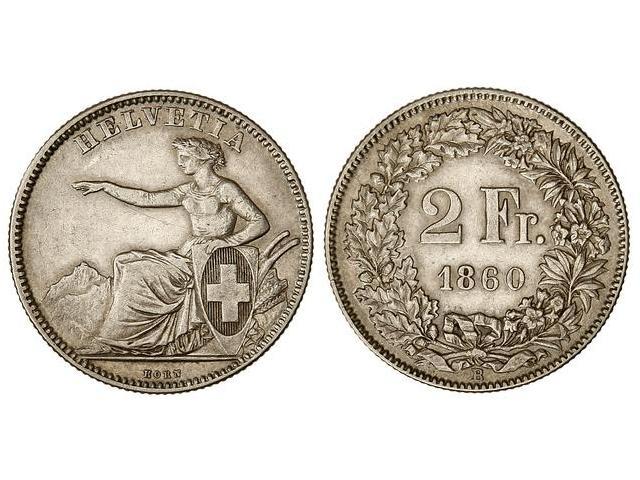 2 Francos. 1860-B. AR. KM-10a. MBC+.