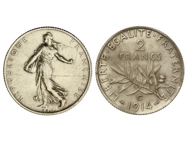 2 Francos. 1914-C. III REPÚBLICA. AR. (Pequeñas rayitas). KM-845.1. SC.