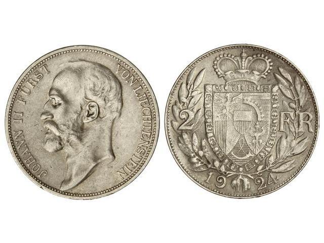 2 Francos. 1924. PRÍNCIPE JUAN II. AR. (Pequeños golpecitos). Y-9. MBC+.