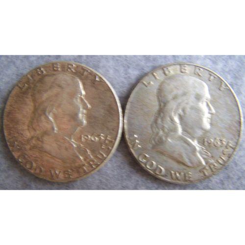 2 Franklin Half Dollars 1963 & 1963D