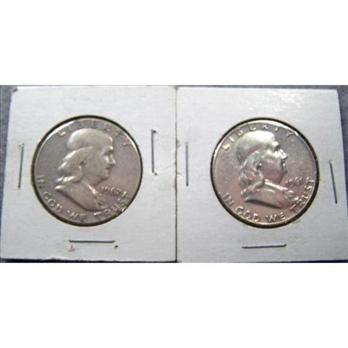2 Franklin Half Dollars 1961D & 1962