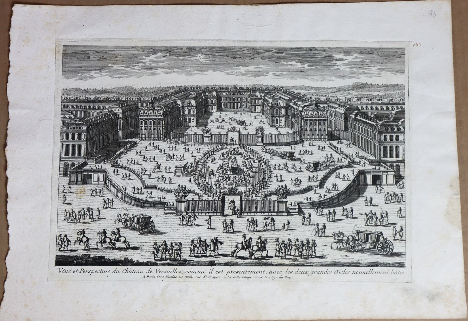The first is an engraving of the Chateaux of Versailles (the Palace of Versailles)