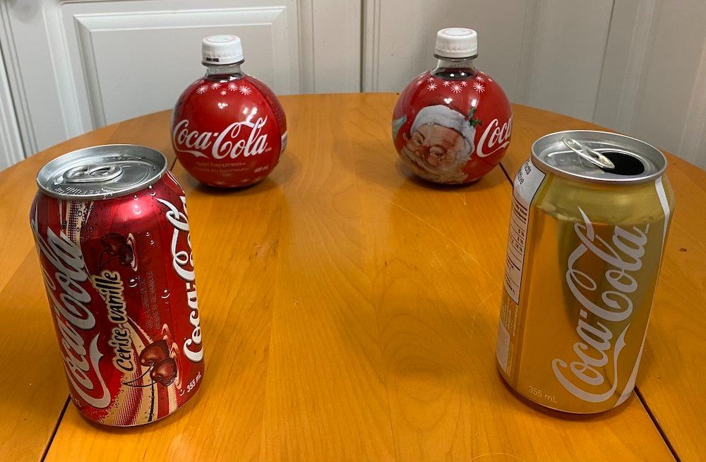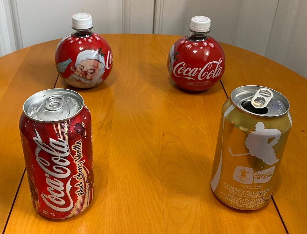2 Full Cola-Cola Collectible Bottles & 2 Cans